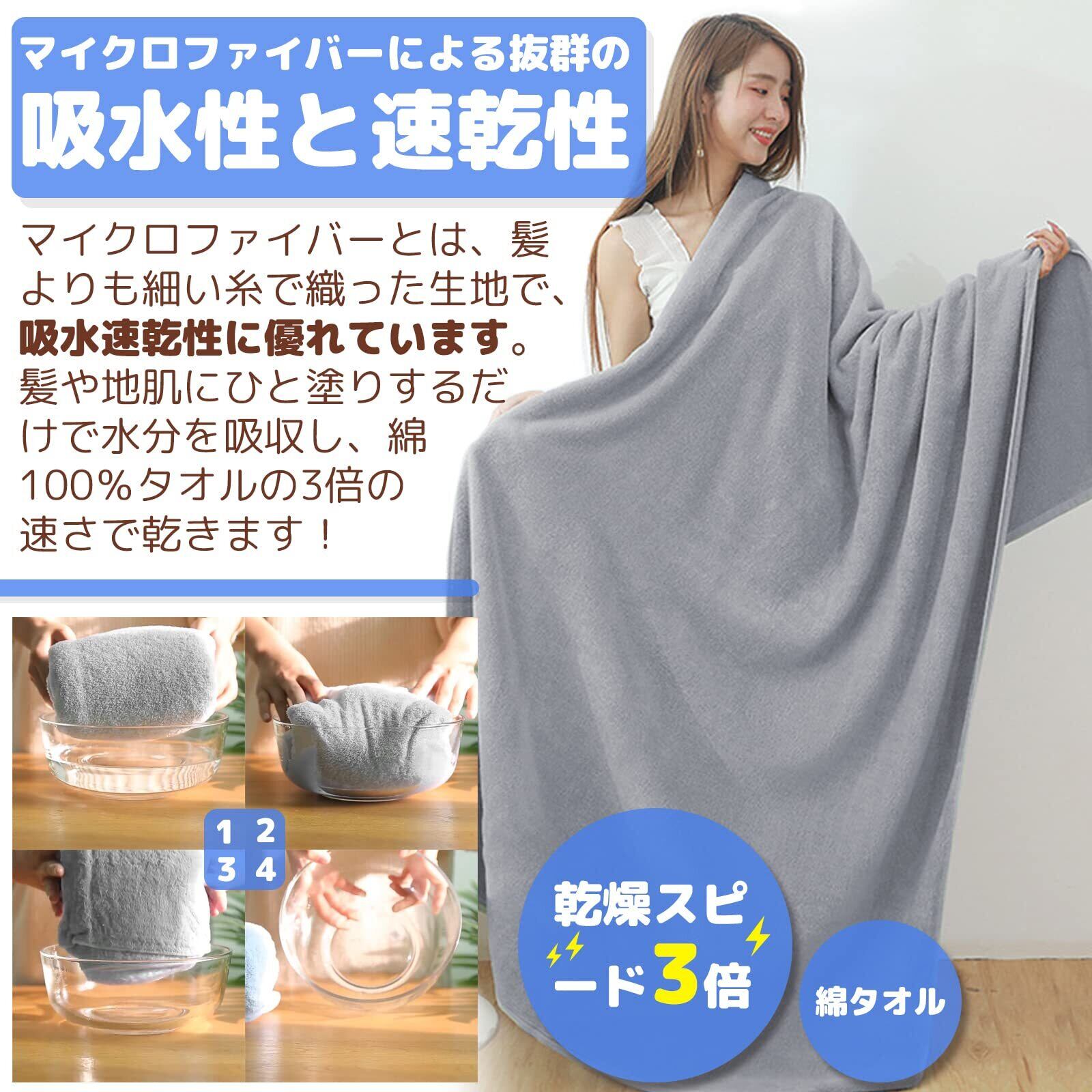 バスタオル 2色2枚セット: サイズ:約90 × 180 cm 。本当の意味でのプラスサイズ、体を包んでも本当に安心!髪の乾かし方、水泳、温泉、スポーツ、ホテル、入浴など様々なシーンで。冷房の効いた寒い環境でのブランケットとして、またはビーチでのビーチタオルとしても最適です