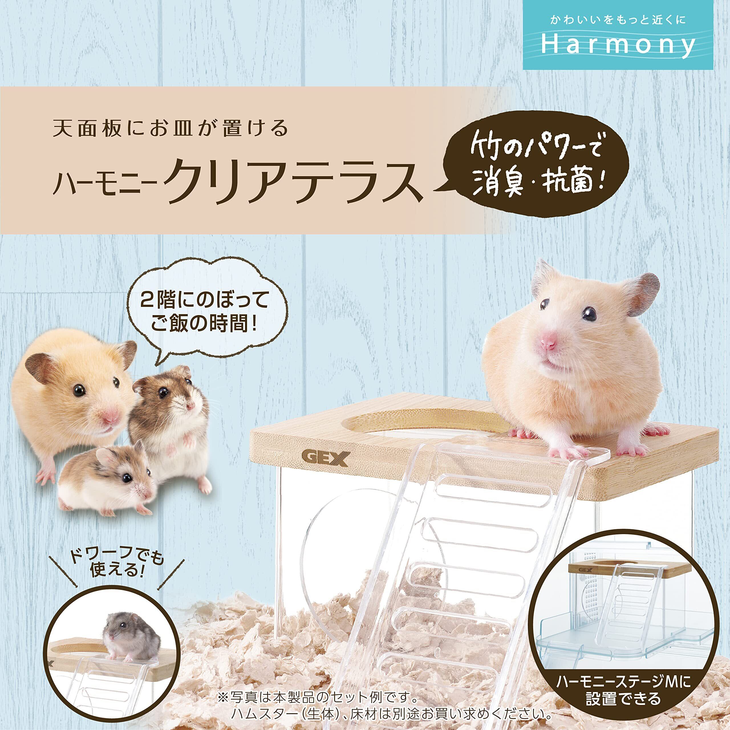 ジェックス Harmony ハーモニークリアテラス 中の様子がよく見える 2階建てのおうち 天面版にお皿が置ける 竹のパワーで消臭・抗菌 ハムスター・小動物用