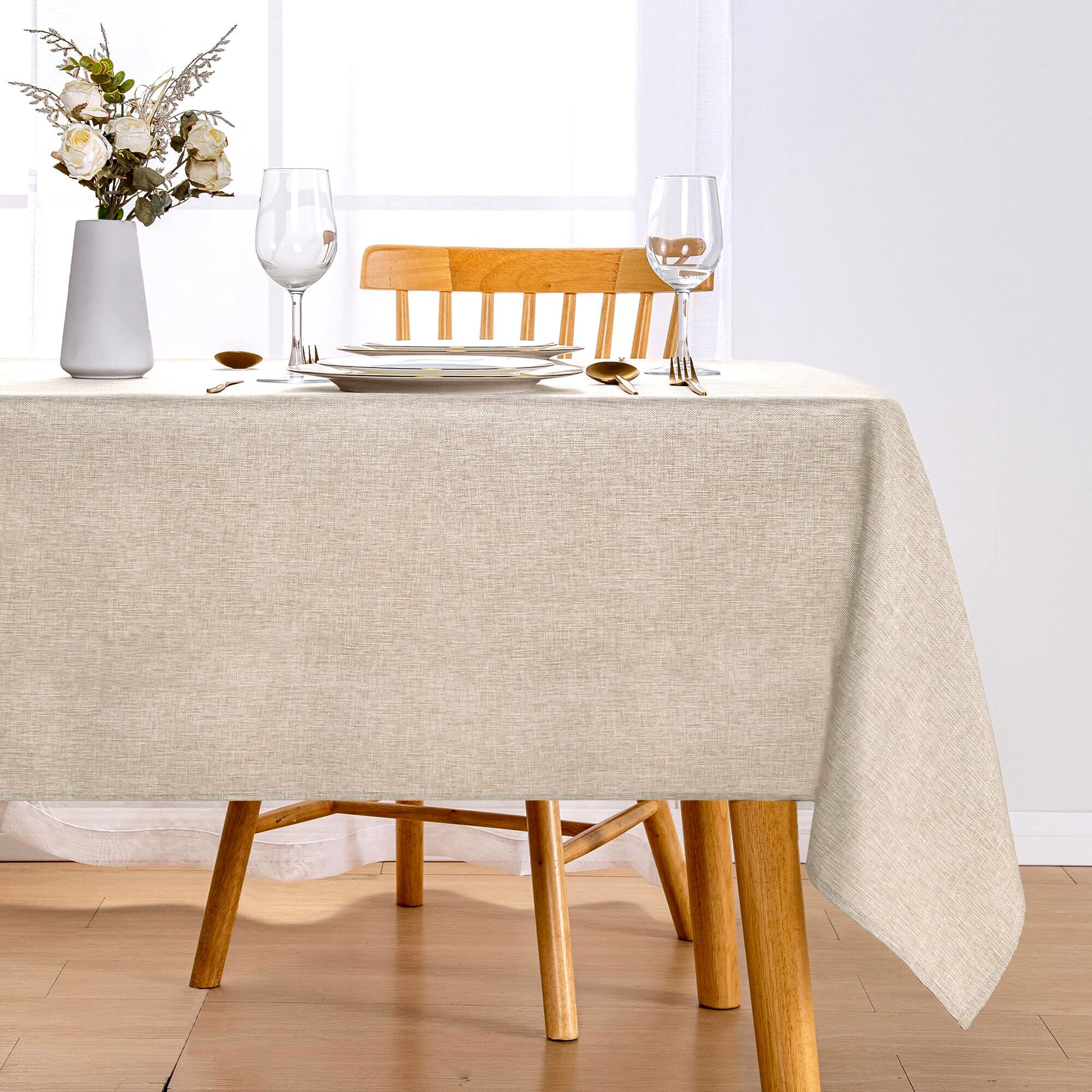 【在庫処分】DWCN テーブルクロス 類麻 長方形 撥水 無地 モダン・シンプル 汚れ防止 テーブルカバー 耐熱 丸洗い 洗濯機可 家庭用 パーティー用 ダイニングテーブル用 140*180cm ベージュ