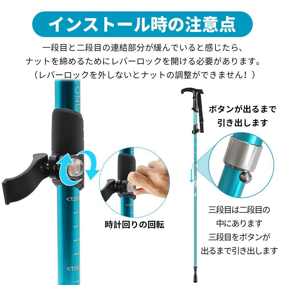 【レバーロック式】短時間で組み立て可能です。レバーロック式で1秒だけお好みな長さを精確に調整できます。軽さ、コンパクトさ、使用感、見た目、すべて最高です。登山ポールは左右対称なので歩きやすい。ポールを使って快適フイットネスウォーキング。ポ一ルを使用して歩くことで正しい姿勢を維持しながら歩くことができます。