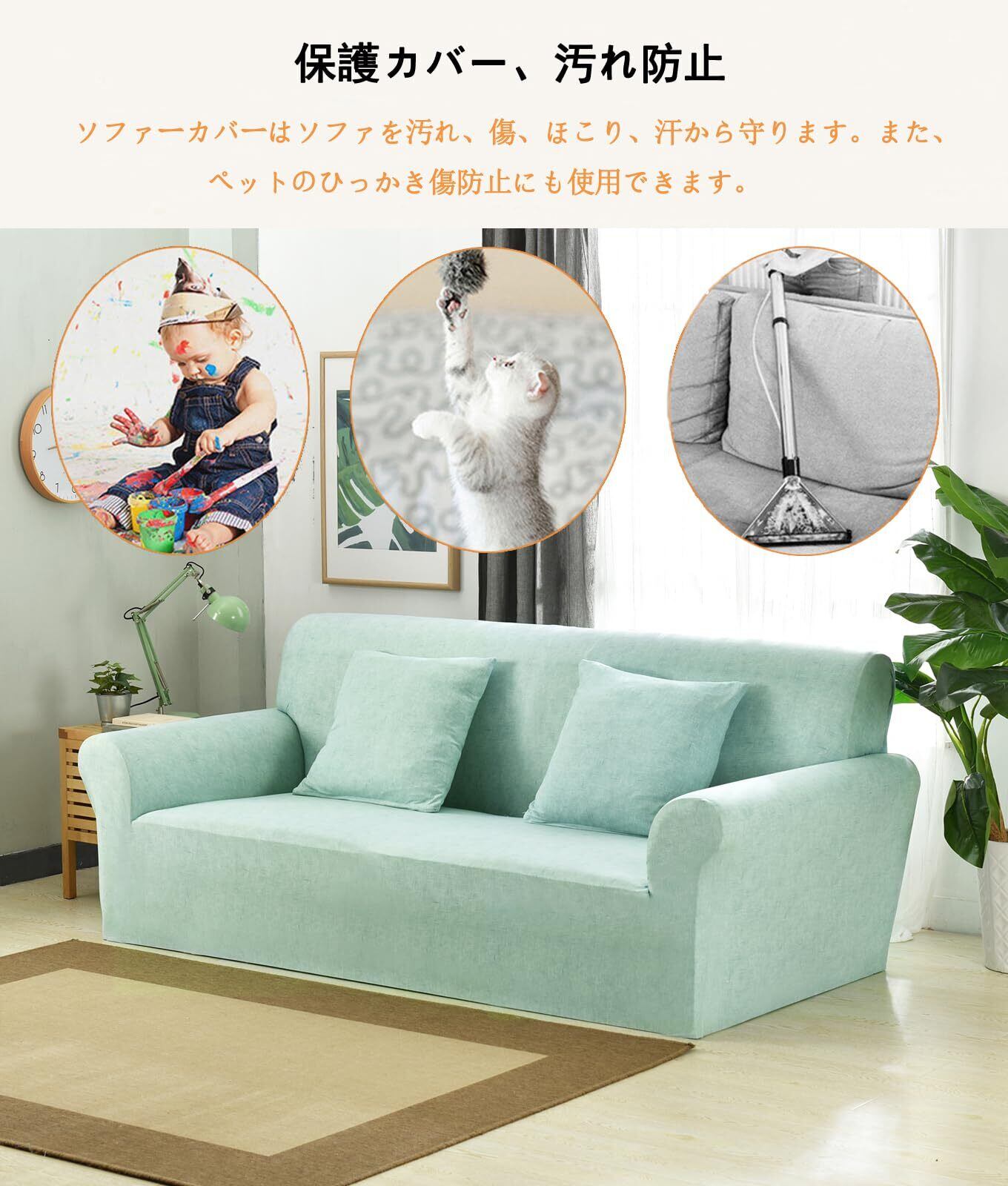 【全面保護】ほこり、キズ、食べ物、ペットの毛、ペットの爪とぎなどの汚れや損傷からソファを保護し、掃除が簡単で、ソファの使用時間を延長できます。赤ちゃん・子ども・犬や猫の家庭に最適です。