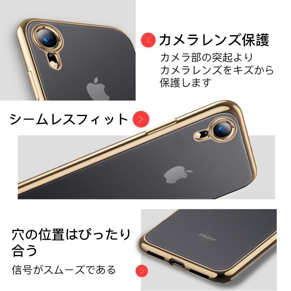 iPhone XR ケース クリア 透明 tpu シリコン メッキ加工 スリム 薄型 6.1インチ スマホケース 耐衝撃 黄変防止 一体型 人気 携帯カバー ゴールド