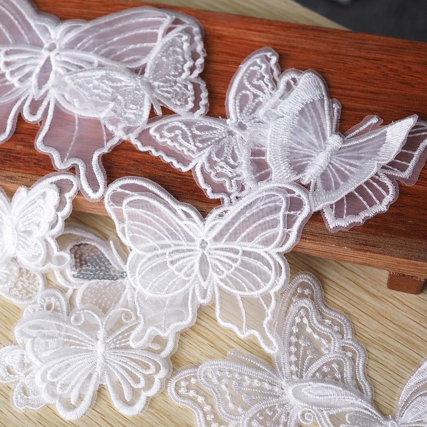 sempiterno 12個セットレース生地 刺繍花 花と蝶のパターン 縫製 DIY 服 工芸品の装飾 パッチ アップリケ モチーフ バッグ 靴 帽子 飾り アクセサリー(ホワイト12個セット/蝶)