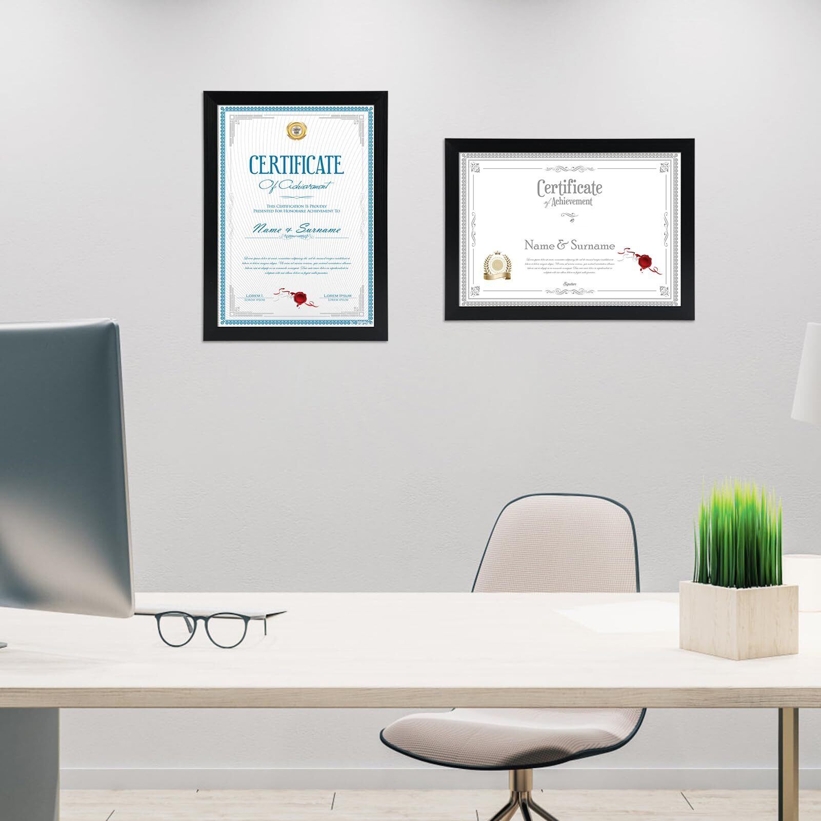 収納用紙サイズ: 297x210mmまでの紙を入れる事ができます。一般的な印刷物や写真に適しており、飾りたい賞状や表彰状や作品などを簡単に飾ることができます。