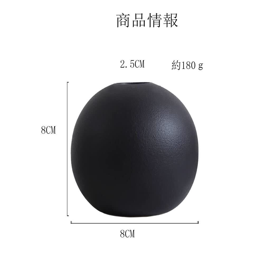 一輪挿し花瓶ミニ花器花入小さいかびんボール花ビンFukuka ® ミニ花瓶陶器はな瓶 かビン黒 小型仏壇用フラワーベース 陶器花器 セラミック 1個入り (黒)