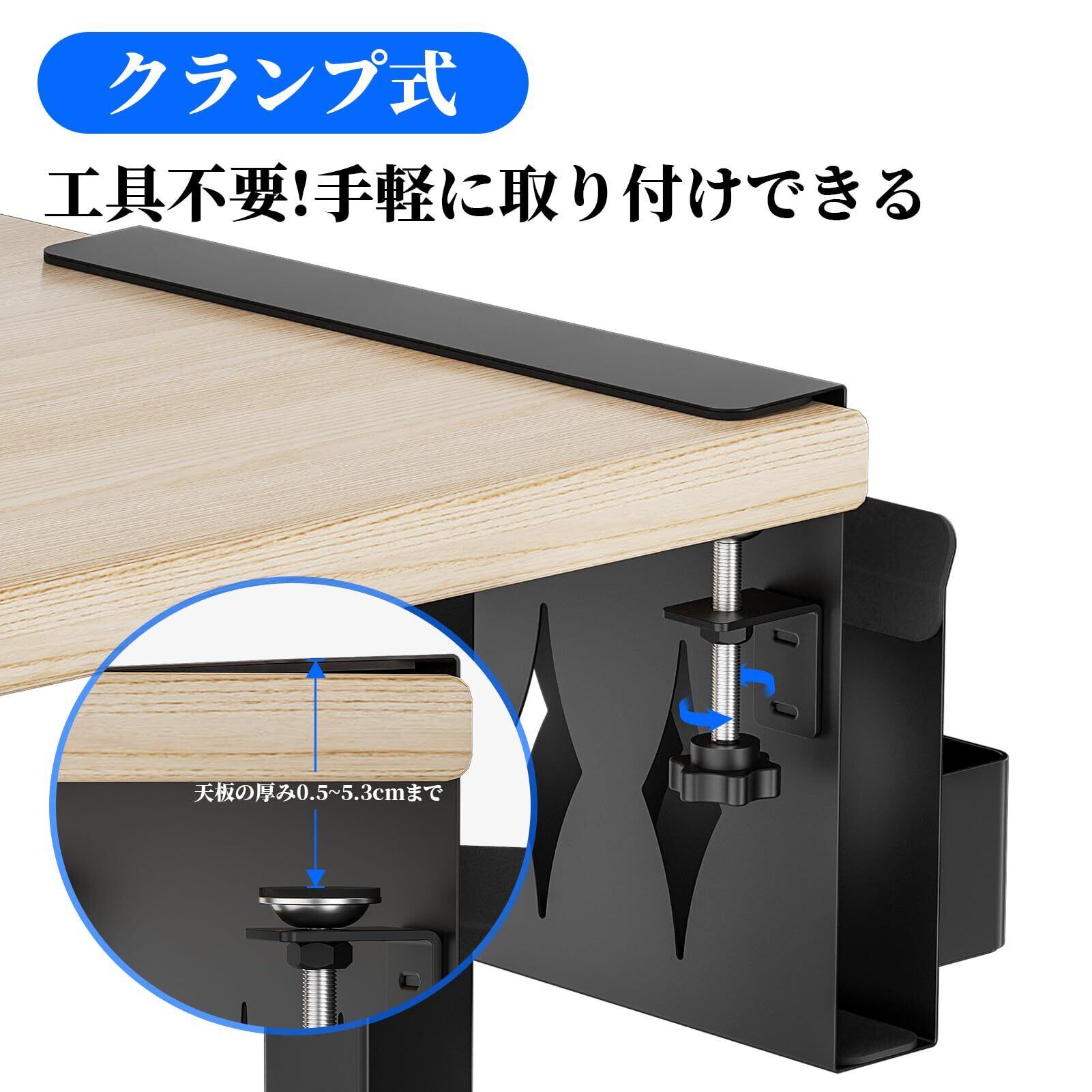 【クランプ式・取付簡単・穴あけ不要】工具不要で簡単に取り付けができるクランプ構造。デスクに穴開けなどの加工の必要はございません。5.3cmまでの天板の厚さに対応可能です。また、製品の内面とクランプの両端は滑り止めシートが付き、ノートパソコンやタブレットなどの機器とテーブルに傷をつけることなく、しっかり固定できます。