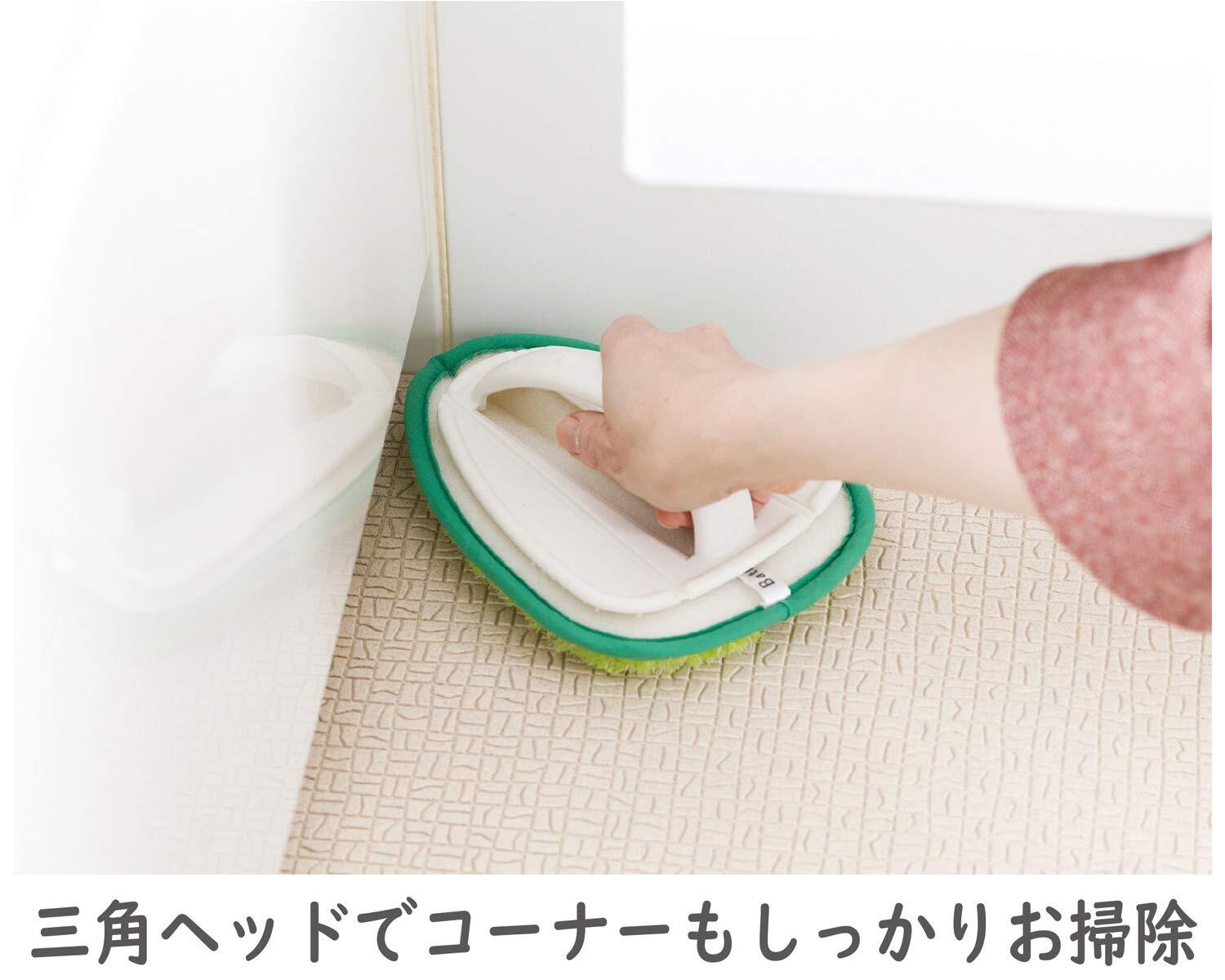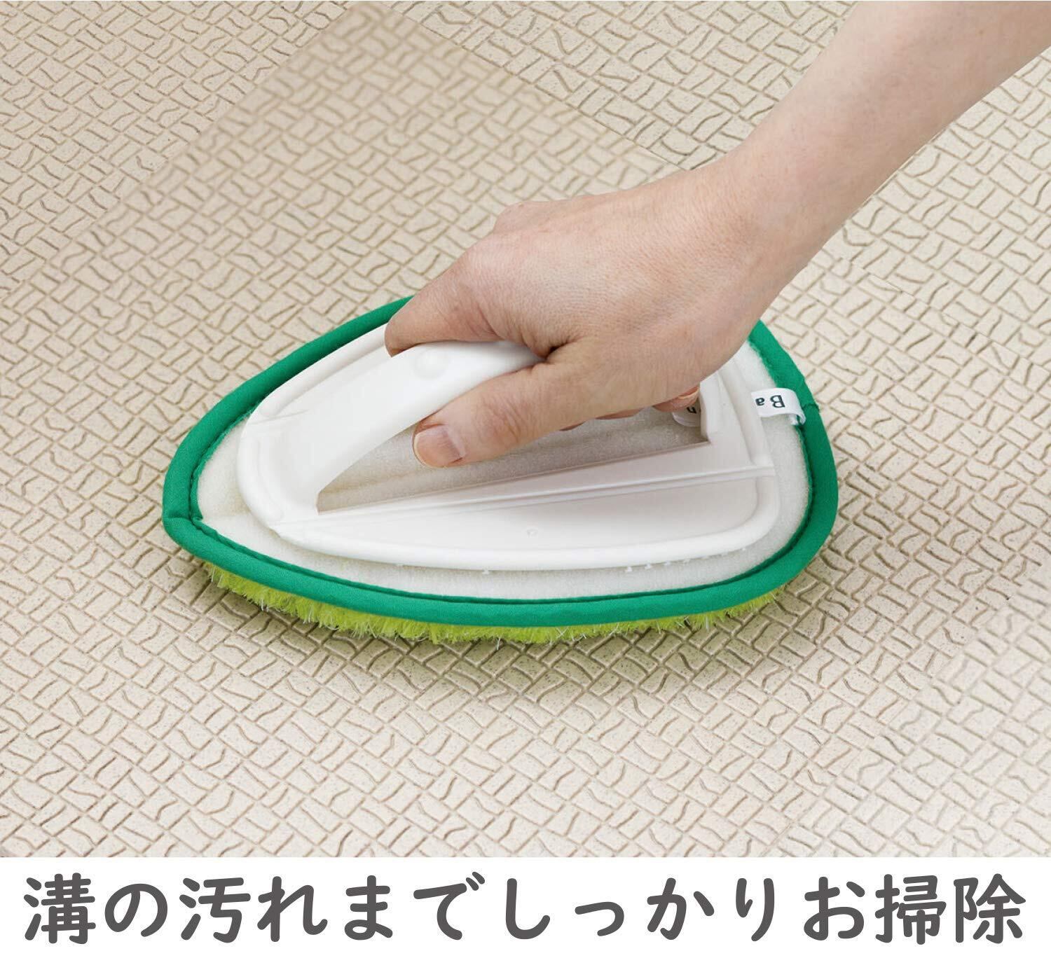 ●三角ヘッドでコーナーの汚れも残さずかき取る。●曲がるブラシ面で壁際掃除がスムーズ。●風呂床の細かい溝に入り込んだブラシが汚れをスッキリ除去。●ブラシは抗菌繊維で雑菌の繁殖を抑える。