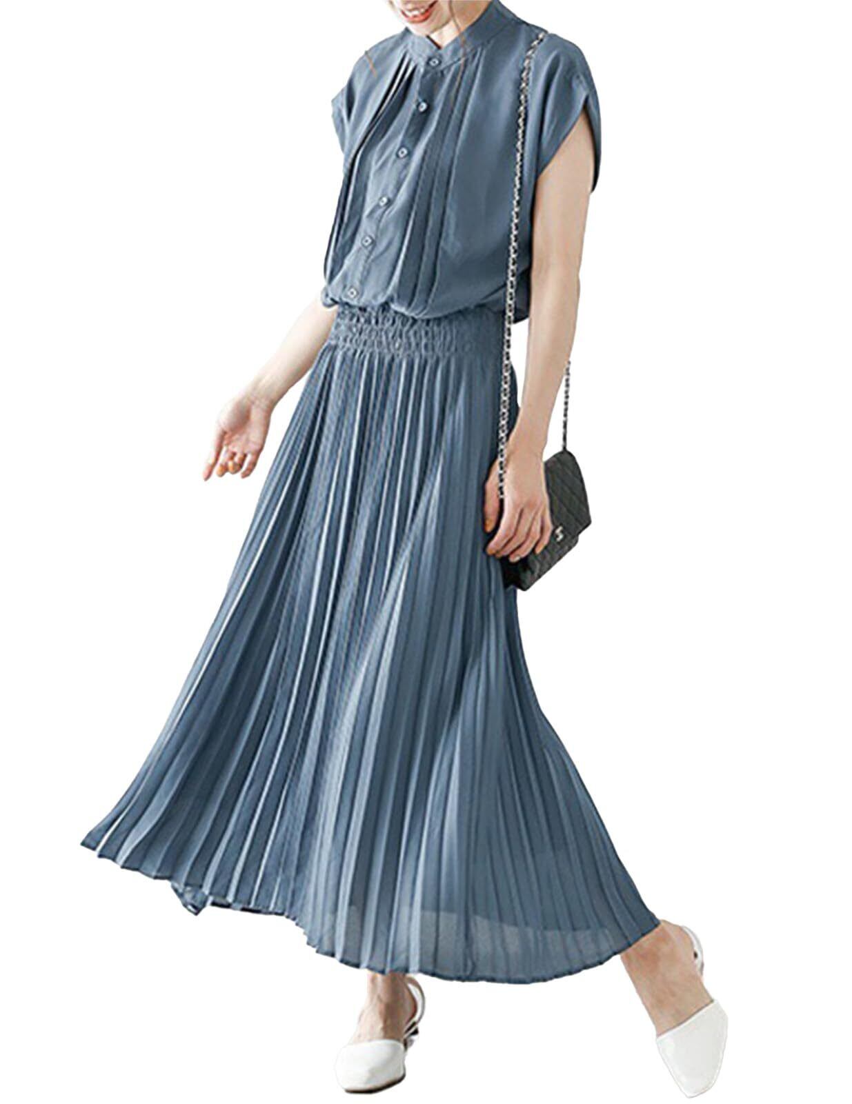 【きれいなシルエット】Aラインのワンピースで着痩せ、脚長効果も。ロングの適宜な長さは動きやすく、足もより長く見せ、着心地のよさとデザイン性が共存しております。エレガントなデザインのカジュアルワンピースです。