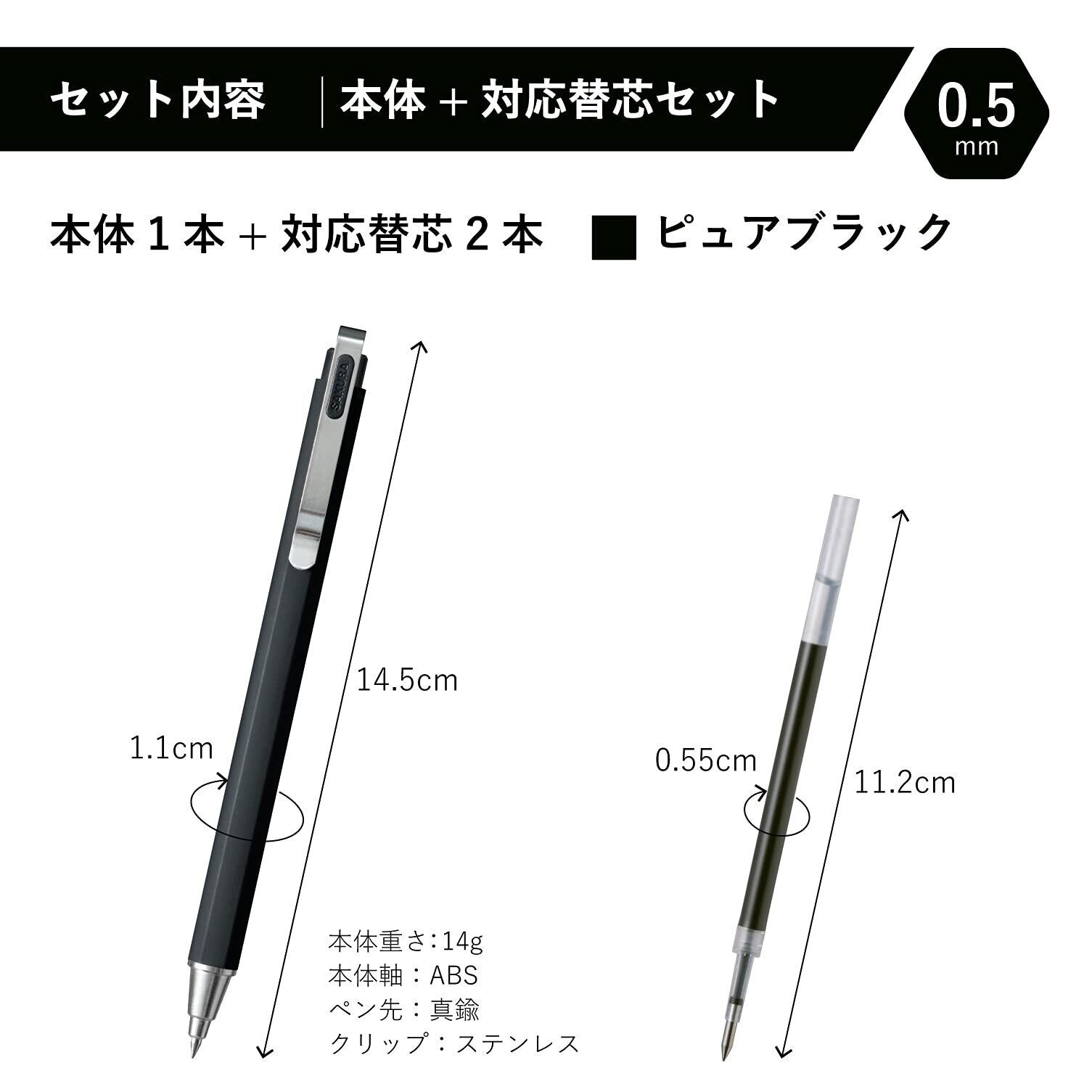 【セット内容】0.5mm・ピュアブラック1本+替え芯2本セット