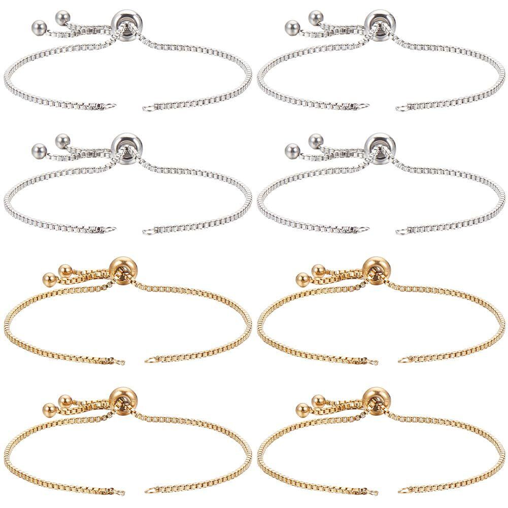 【数量限定】SUNNYCLUE 1箱8個 24cm 304ステンレス 2色 ブレスレット スライダー 調整可能 シルバー スライダー ブレスレット カン付き ブレスレット パーツ チェーン 金色 ブレスレット ブレスレット キット スライダー チェーン 半完成ブレスレット バングル作り ブレスレット作り アクセサリーパーツ クラフト用品 素材 DIY材料 アクセサリーパーツ 飾り物 ジュエリー作り レディース デコキット ハンドメイドパーツ クラフト手芸 手作り 金具セット | allstore5