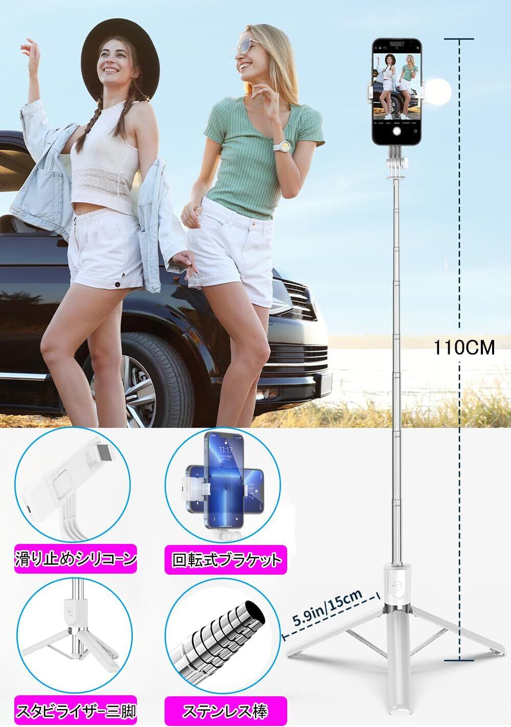 【新春セール】【新登場・軽量】自撮り棒 スマホ 三脚 自撮り スマホスタンド i-Phone 自撮り棒 android兼用 コンパクト 卓上 軽量 360度回転 無線リモコン付き 折りたたみ式 アルミニウム合金製 110cm&7段階伸縮 折りたたみ式 持ち運び便利 360°+225°可調節 4-7インチ多機種対応 旅行/セルフィー/撮影/動画鑑賞/ライブ配信に最適 ブラック・パッケージング (ホワイト) | allstore5