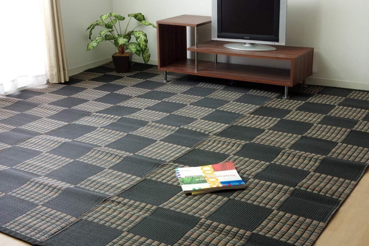 イケヒコ ラグ カーペット 畳 マット 肌触りが良い 正方形 国産 日本製 ウィード PP ブラック 本間2畳約 191×191cm 傷がつきにくく引っ掻き傷にも強い丈夫なPP素材で作ったカーペット 汚れに強くてお手入れ簡単 キャンプ・花見などアウトドアでも活躍 ベタつかない 洗える シンプル モダン 格子柄 #1090280031602