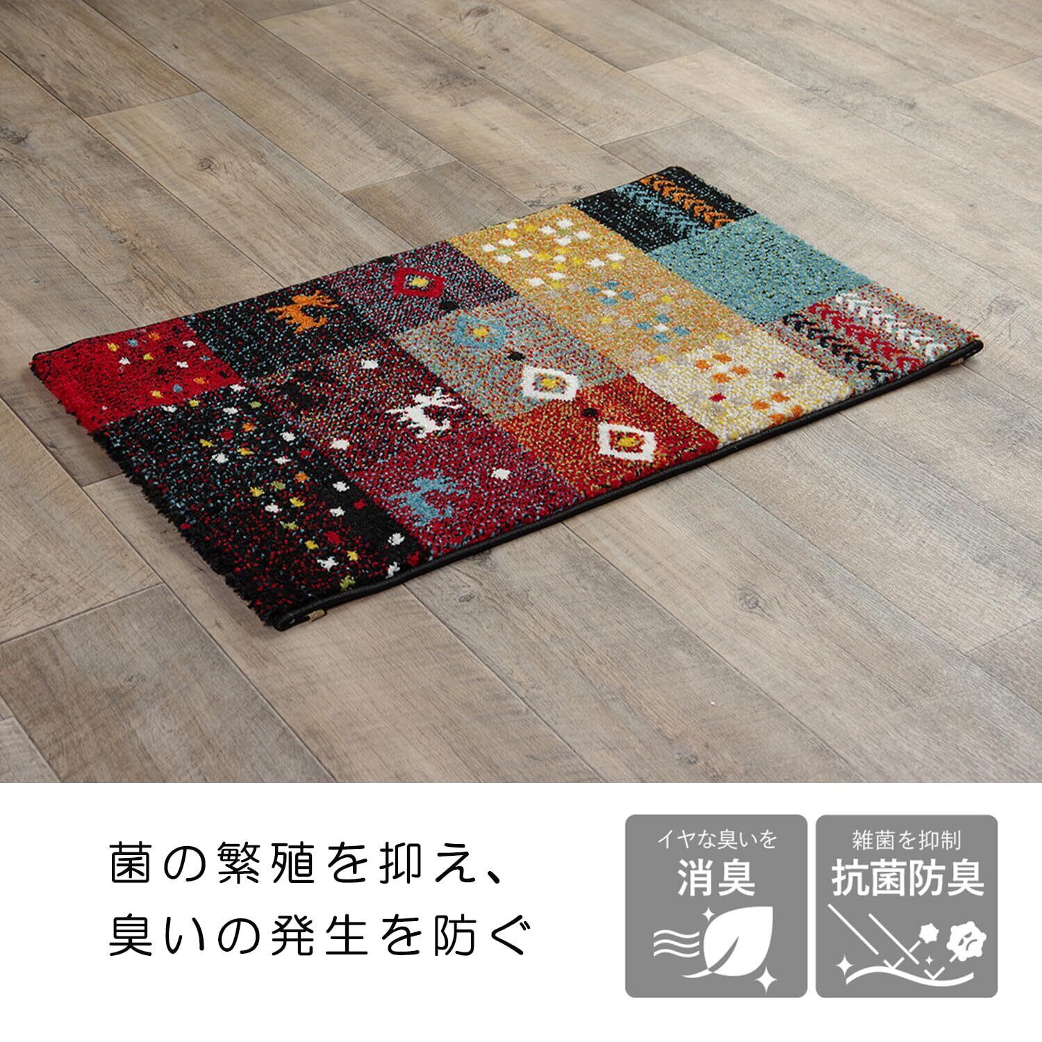 イケヒコ 玄関 選べる マット ラグ ウィルトン トルコ フォリア 約60×90cm レッド ギャベ柄 抗菌防臭 消臭機能 へたりにくい #2042569