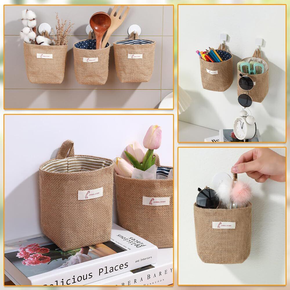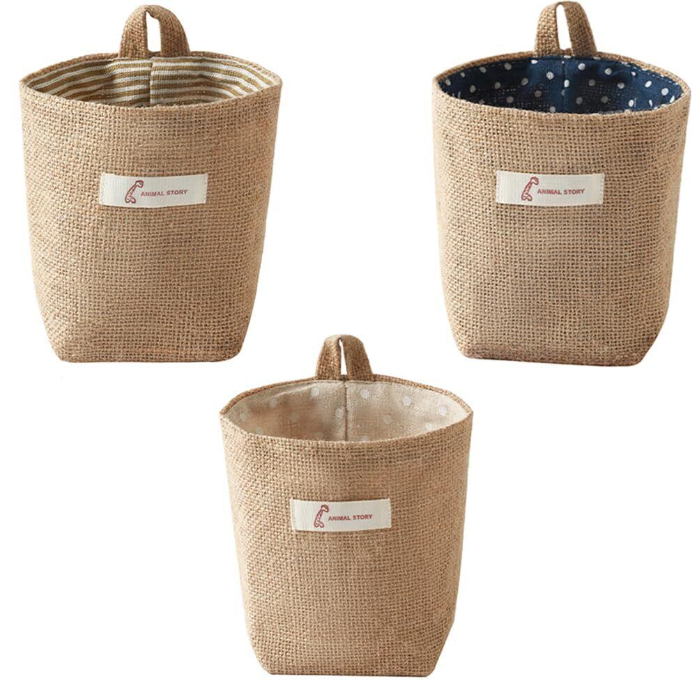 ウォールポケット 麻 壁掛け収納 収納ポケット ベッドサイド 収納 吊り下げフルーツバッグ ハンギングフルーツバッグ 小物整理ラック 壁掛け収納 家庭用品 3個セット