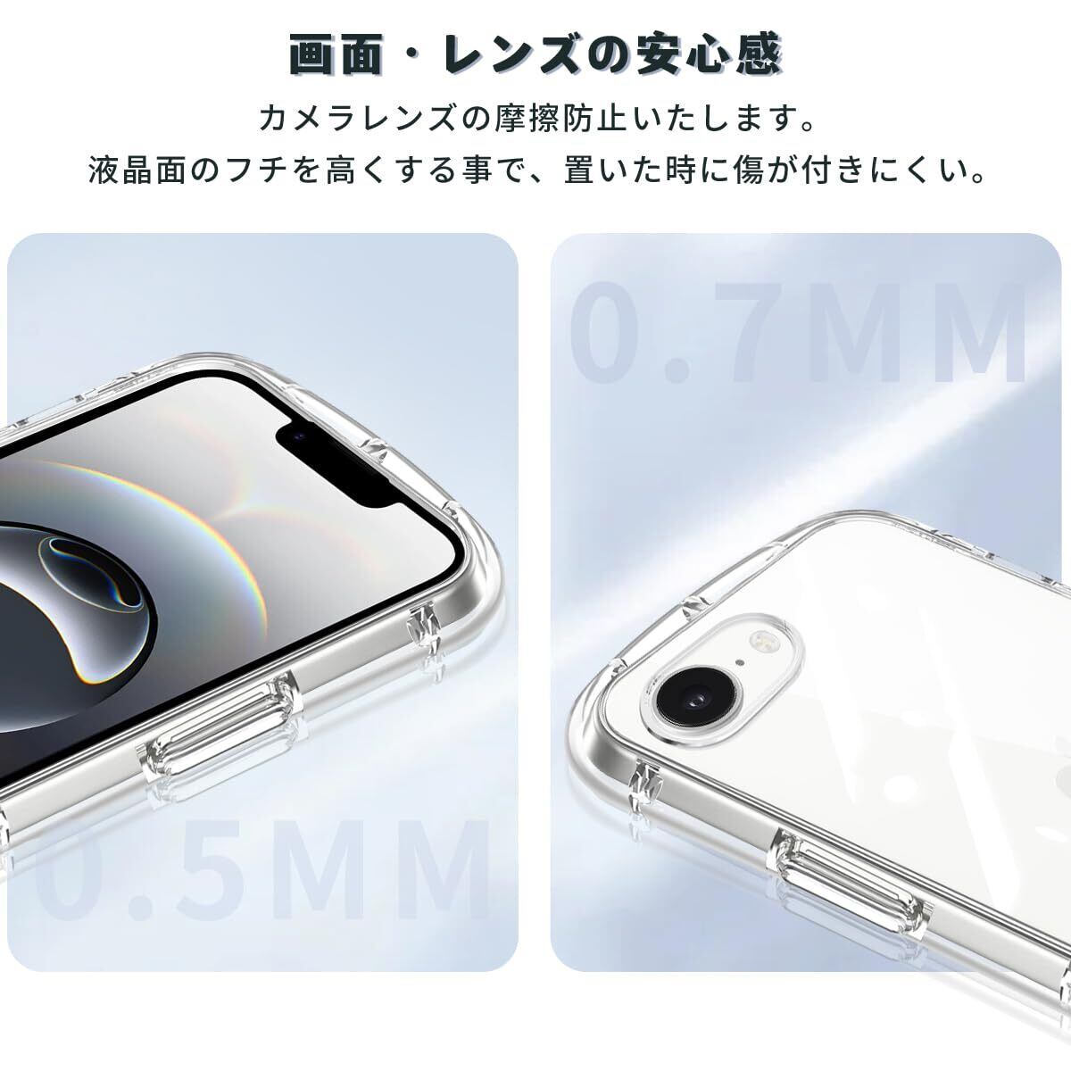 【 全面保护】レーム部分とカメラのフチを高く設計し。平らな場所においても、液晶画面とカメラレンズに直接触れることがなく。