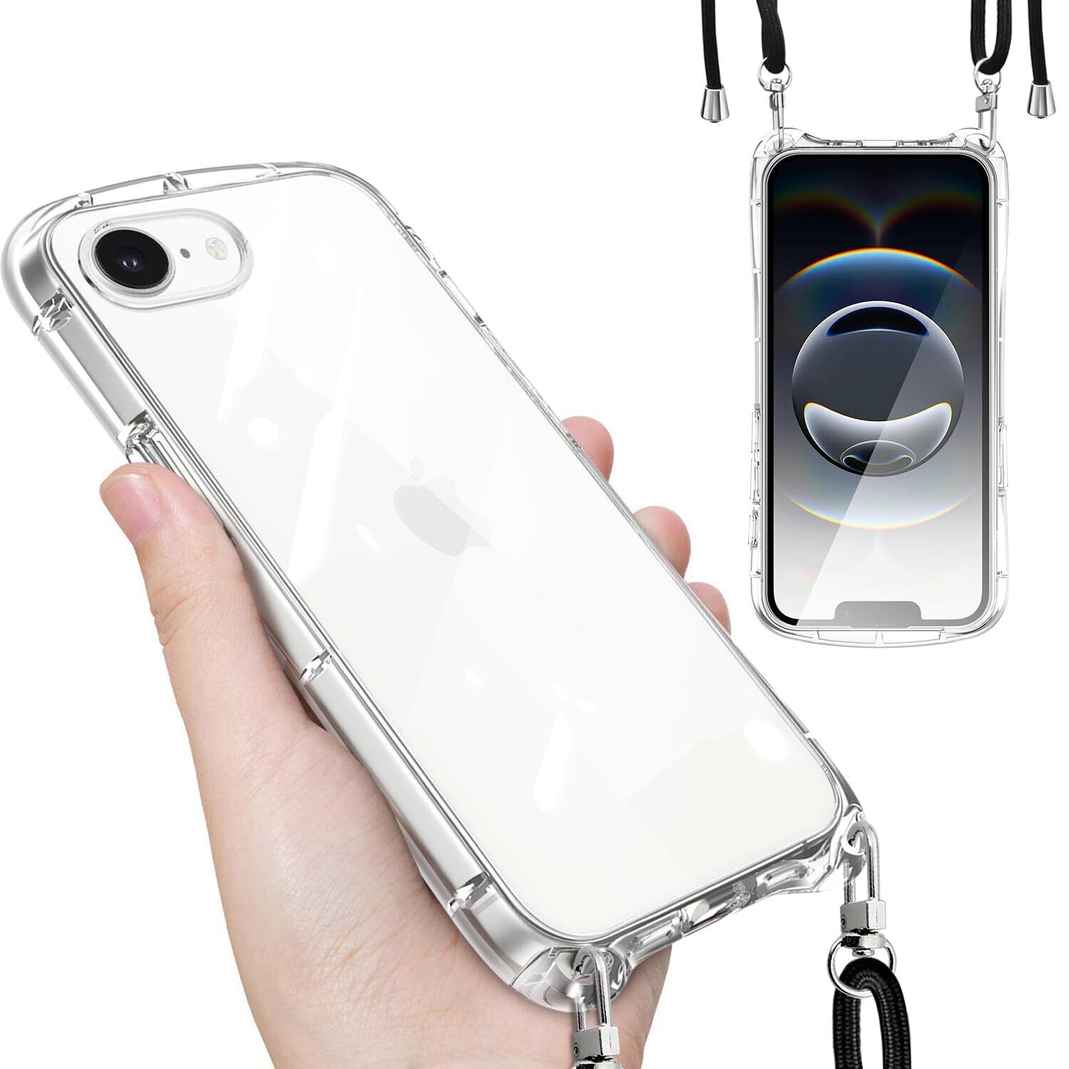 【在庫処分】iPhone 16e 用 ケース クリア ショルダー ストラップ付き アイフォン16e 用 カバー 透明 縄掛け 肩掛け 斜めかけ TPU 耐衝撃 全面保護 薄型 韓国 可愛い iphone16e 用 スマホケース (6.1インチ)