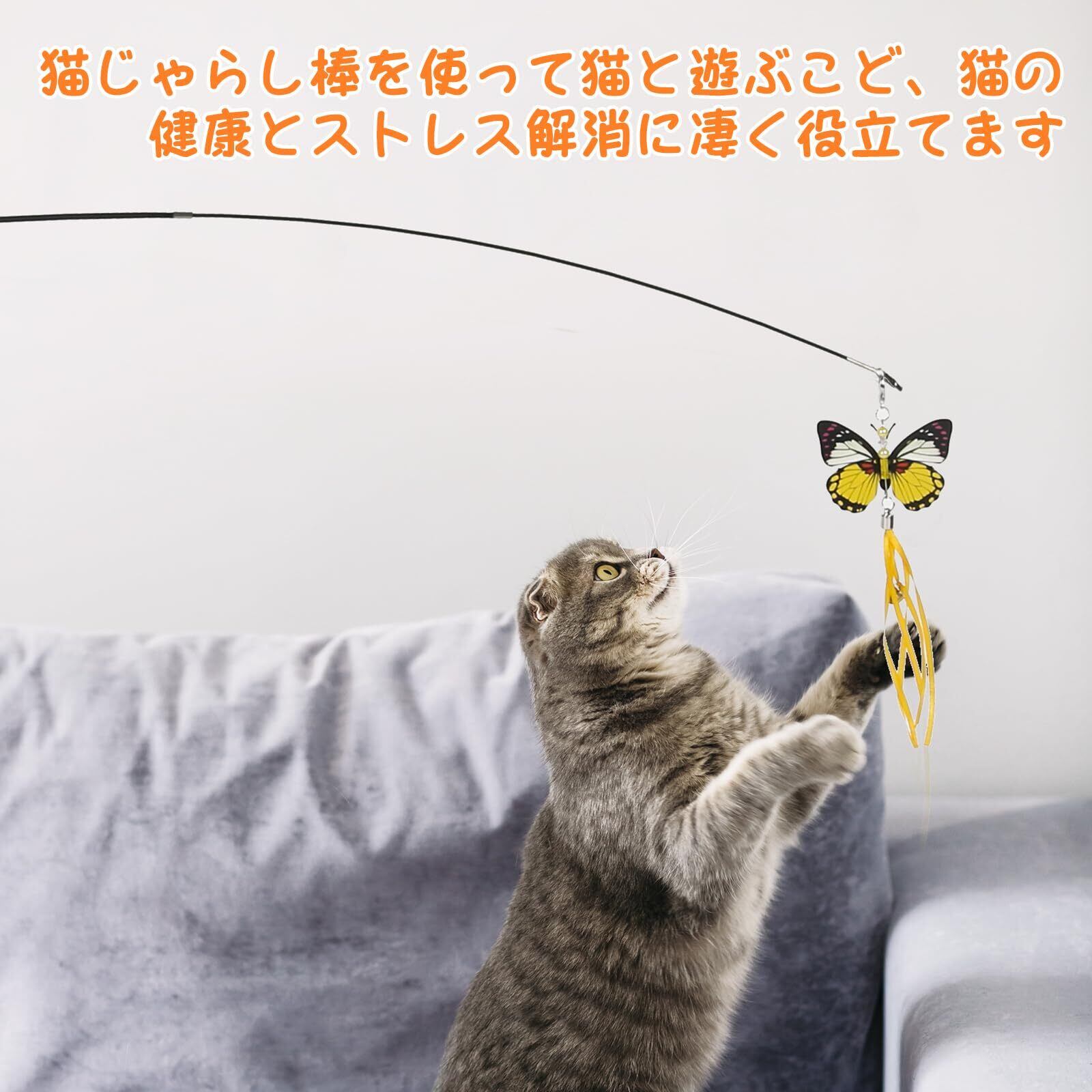 「操作は簡単」 長い釣竿のおかげで、リラックスした姿勢でも猫をからかって、飛び跳ねさせることができます。猫じゃらしは猫の健康とストレス解消に凄く役立てます。