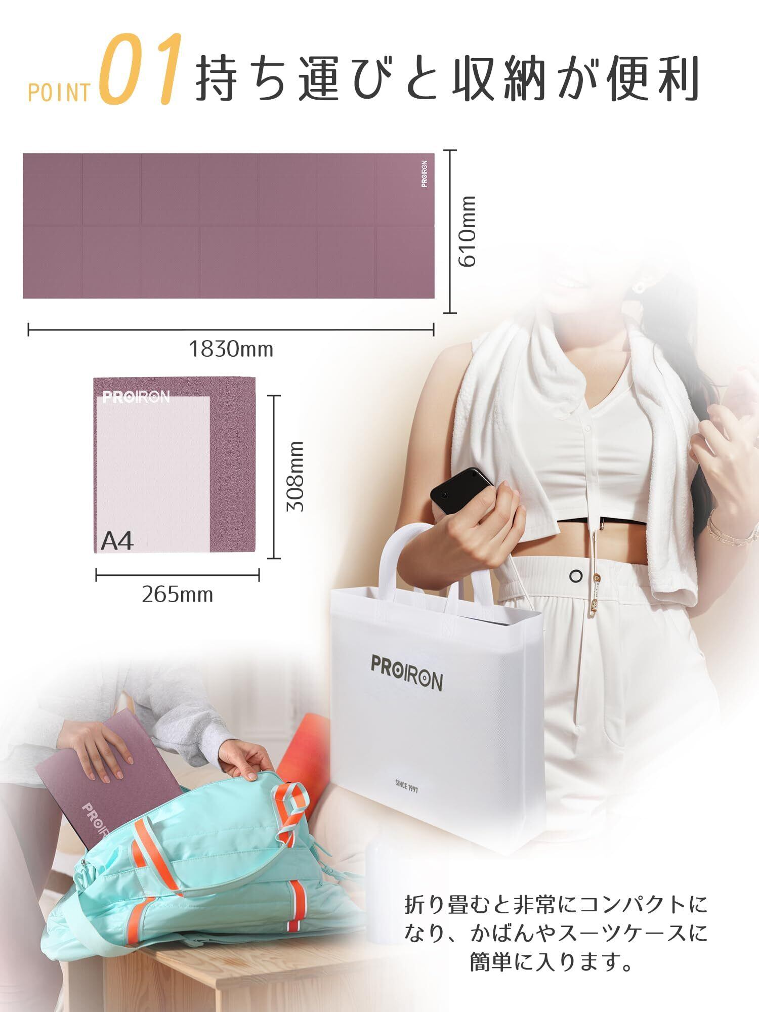 【人気商品】PROIRON ヨガマット 折りたたみ ストレッチマット 折畳み 折り畳みマット コンパクト トラベルヨガマット トレーニングマット 折りたたみ 軽量 持ち運び 183×61cm 5色