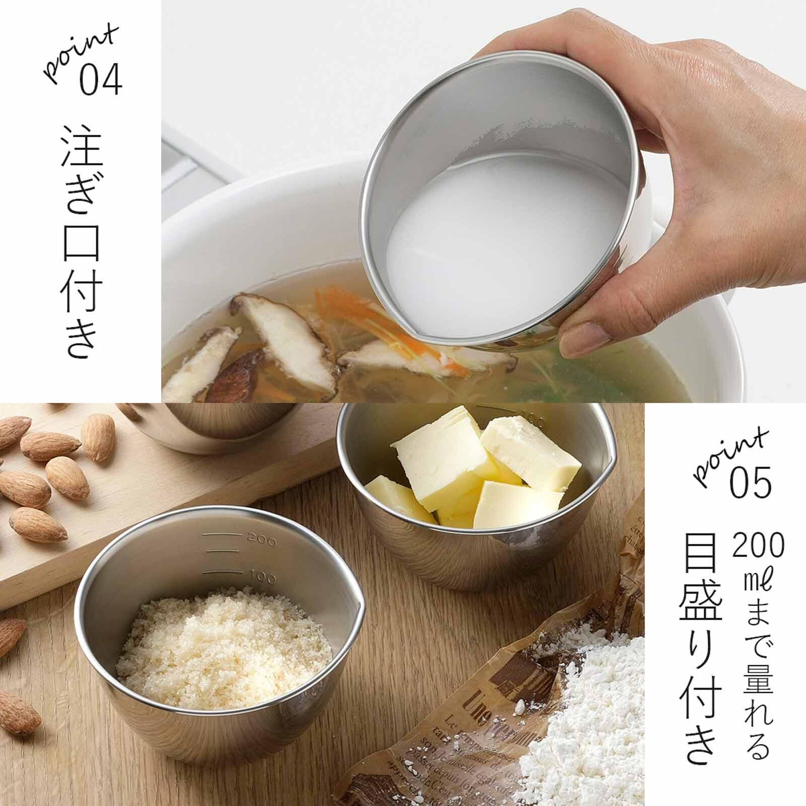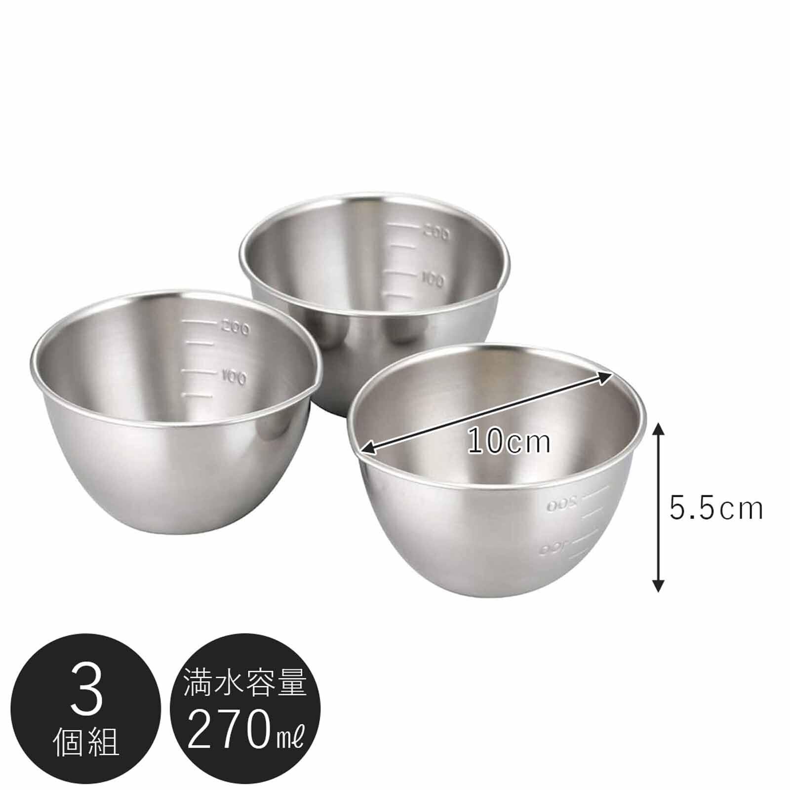 下村企販 ボウル 270ml 3個組 【日本製】 注ぎ口付き 目盛付き 食洗機対応 下ごしらえに便利 小分け ボール 容器 ステンレス 28867 燕三条