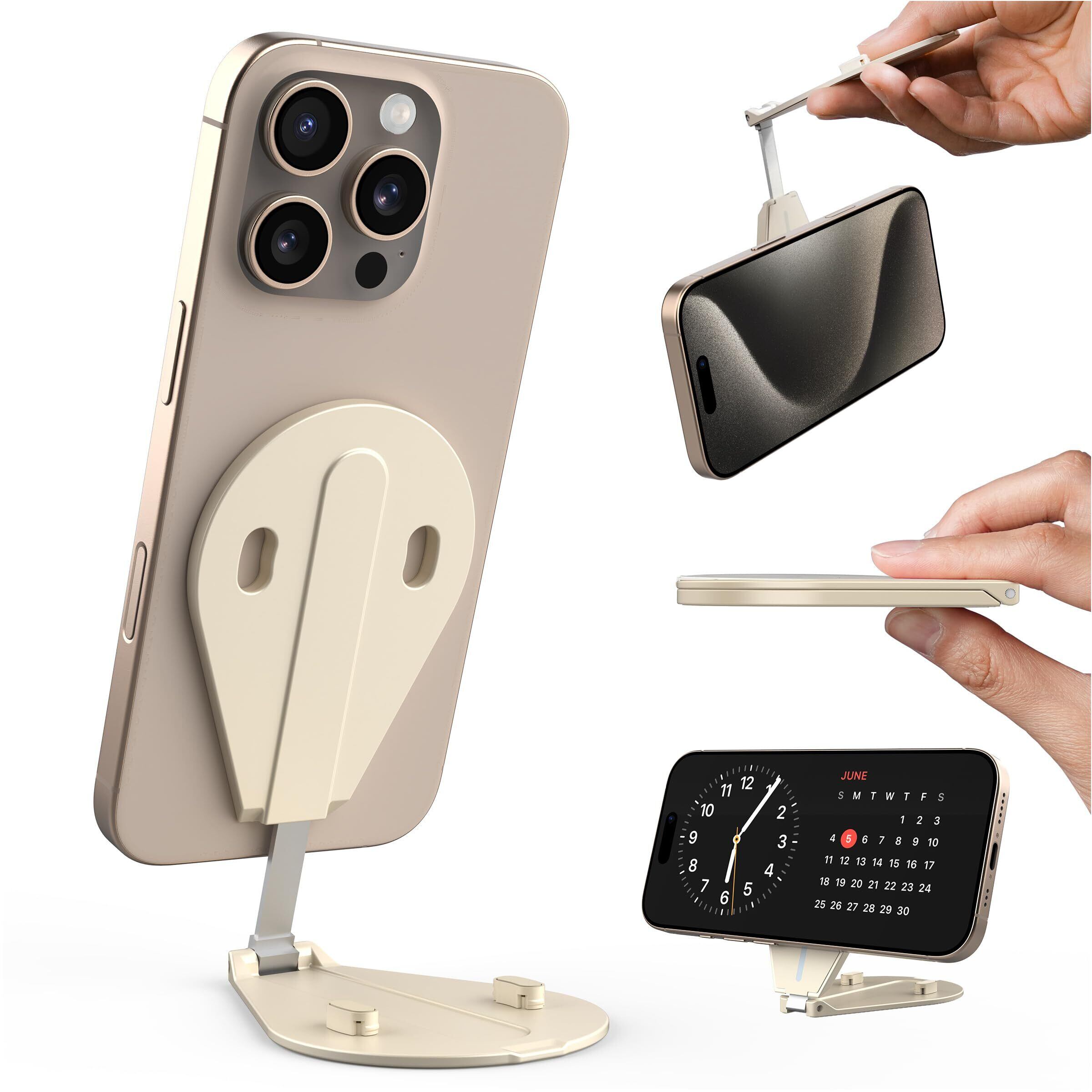 TELESIN° マグネットスマホスタンド 薄型 4WAY多機能スタンド 軽量 折りたたみ 強力磁気スタンド MagSafe対応 多角度調整 3cm可伸縮 アルミ合金製 マグセーフスタンド 旅行/自撮り/写真/動画撮影/ライブ配信会議に対応 iPhone/Android適用