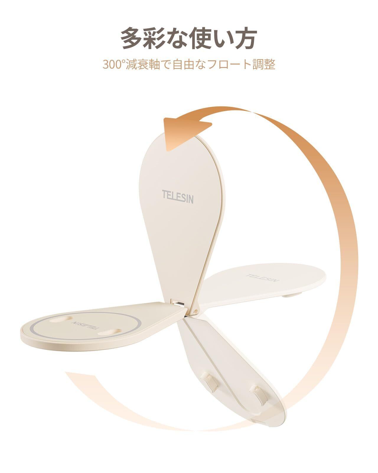 「角度が自由に調整」アングル制限のない自由。300度回転×60度チルトの立体調整可能。マグセーフ スマホスタンドはテーブル上でのリモート会議から、ベッド上の動画視聴まで、人体工学に基づいた最適ポジションを瞬時に構築。指先1本でプロ級の画角調整が可能です。