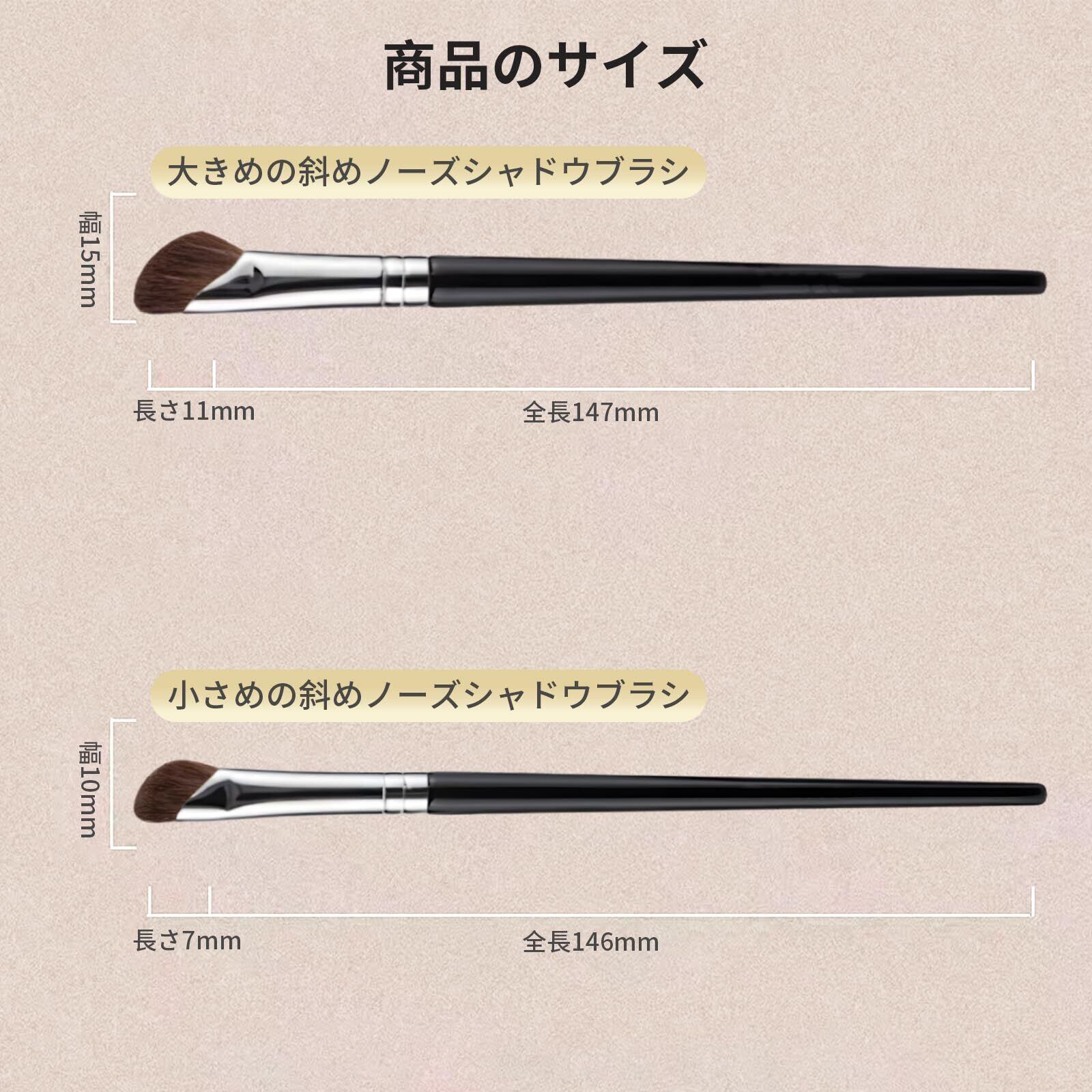 aninako ノーズシャドウ ブラシ 斜め 2本セット 大+小 シェーディングブラシ ポニー毛 メイクブラシ 動物毛100% 粉含みよい 発色が良い 小鼻ブラシ 携帯用