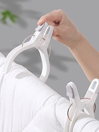 布団ばさみ 大型 JunyueLiang 洗濯物干し らくらく 強力バネ 布団干しばさみ 跡がつかない 固定 竿ピンチ 防風タイプ 落下防止 布団固定器 滑り止め 室外干し 耐久性 (ホワイト-4個セット)