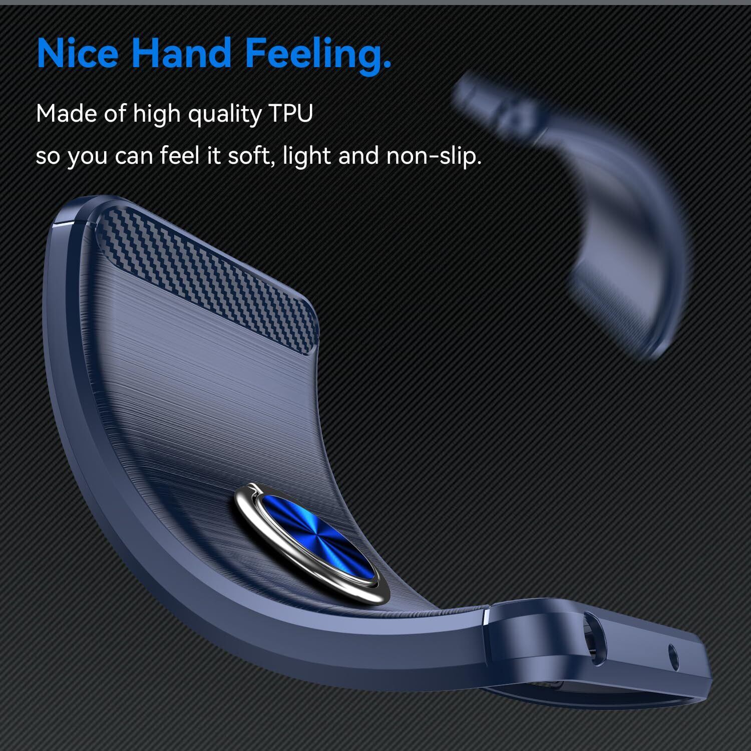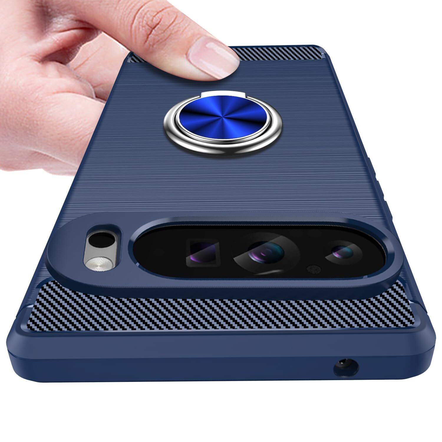 Google Pixel 9 Pro XL 用ケース リング付き TPU 炭素繊維スマホケース 衝撃吸収 スタンド機能 薄型 360回転 車載ホルダー対応 散熱加工 指紋防止 スリム ソフト グーグル ピクセル9 Pro XL 用携帯カバー 青 KC-14-59