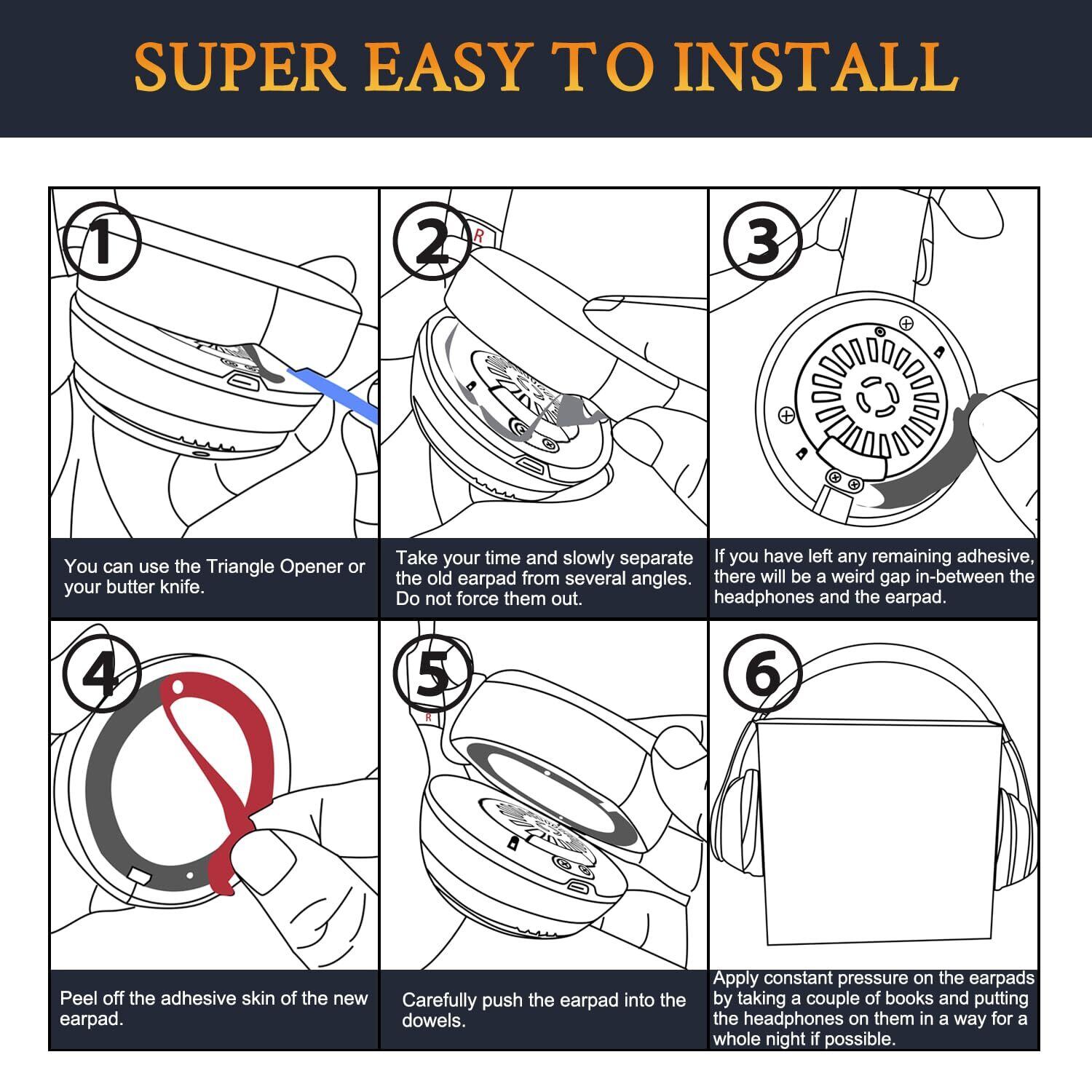 完璧なインストール:三角オープナーが付属しており、ユーザーガイドに従って、数分で簡単にイヤーパッドを取り替えることができます。迅速で便利な操作が可能です。もしわかりにくい点がありましたら、お気軽にお問い合わせください。