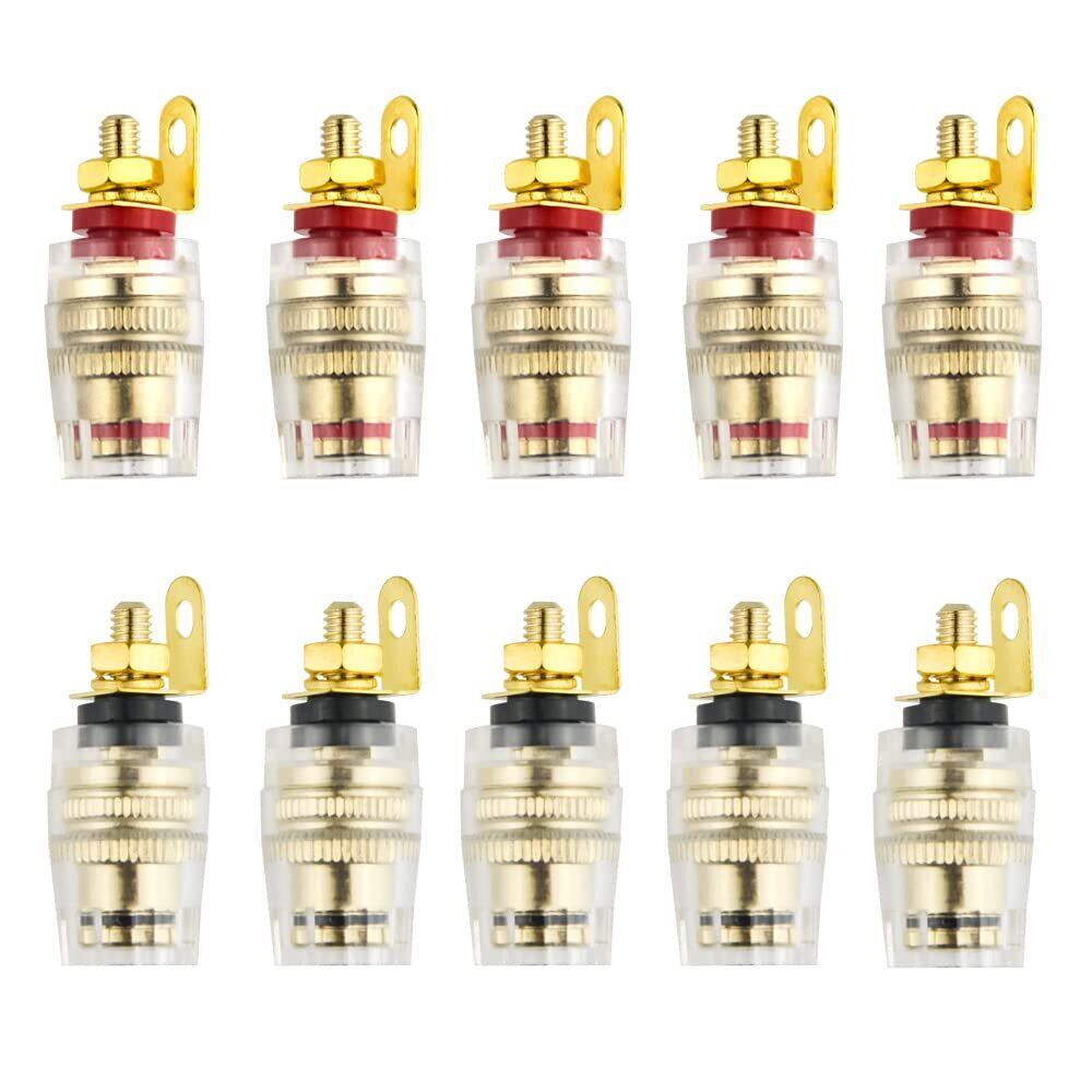 WMYCONGCONG 10個 金メッキ スピーカーターミナル バインディングポスト 4mm バナナプラグソケットコネクタ 配線接続 アンプスピーカー端子用 赤5 + 黒5