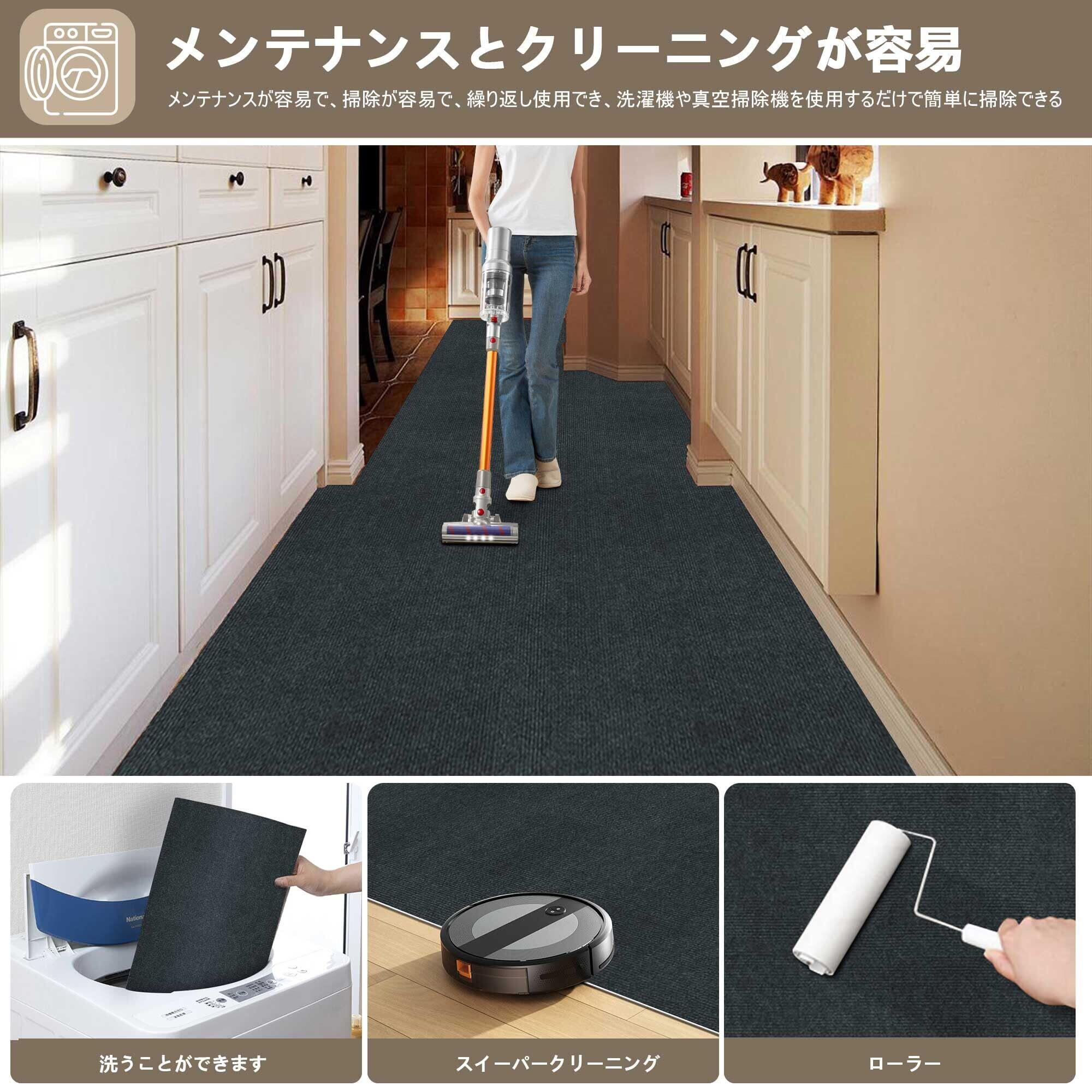 廊下 カーペット XIWEIYI ロングカーペット ズレない 洗える 撥水 おしゃれ 無地 カーペットタイプ ロングマット 吸着 廊下敷き TPR 防音 ラグ 無地 ペット 置くだけで吸着マット ロングマット ロールマット 廊下マット キッチンマット 玄関マット 階段マット60×180cm 厚さ4 mm(ブラック)