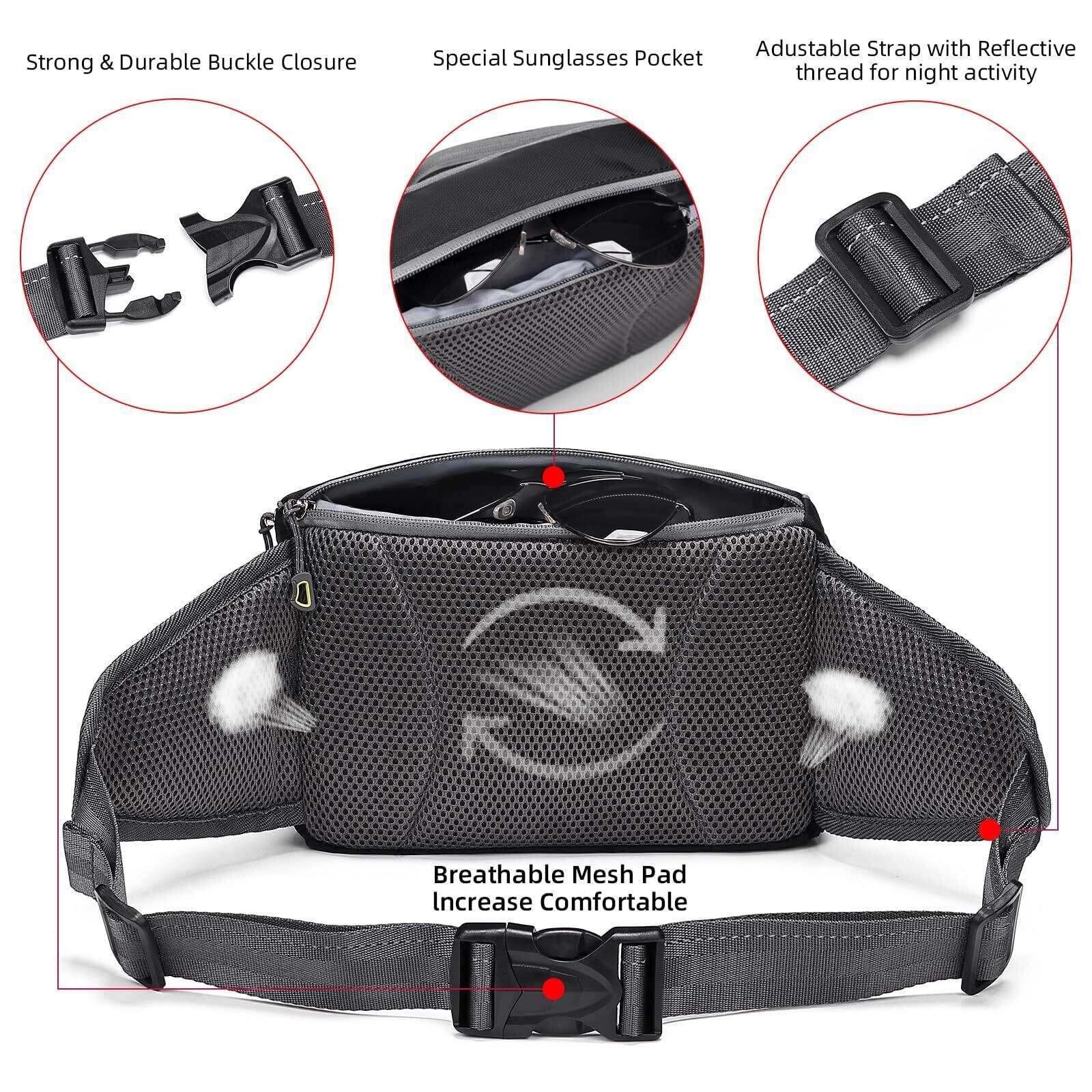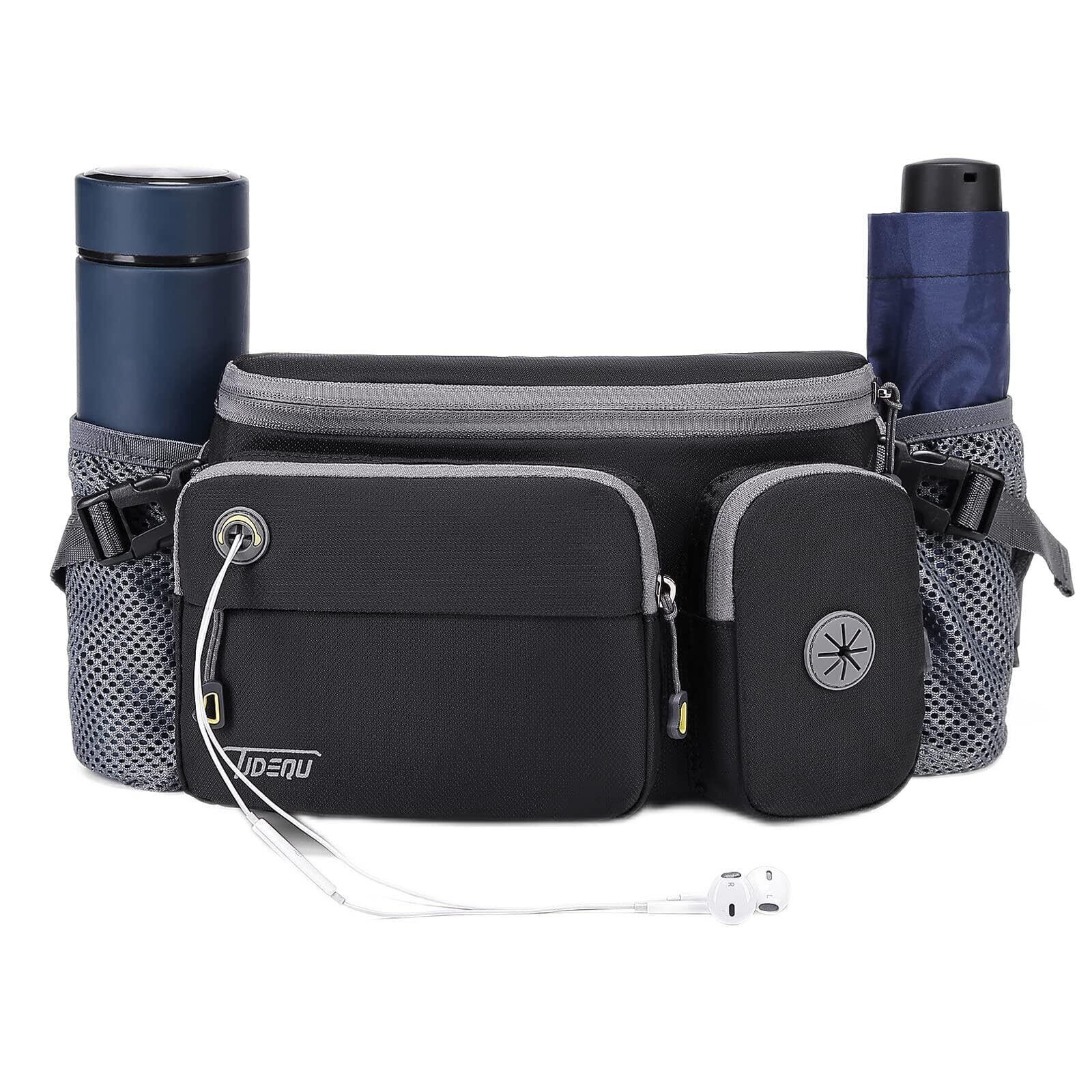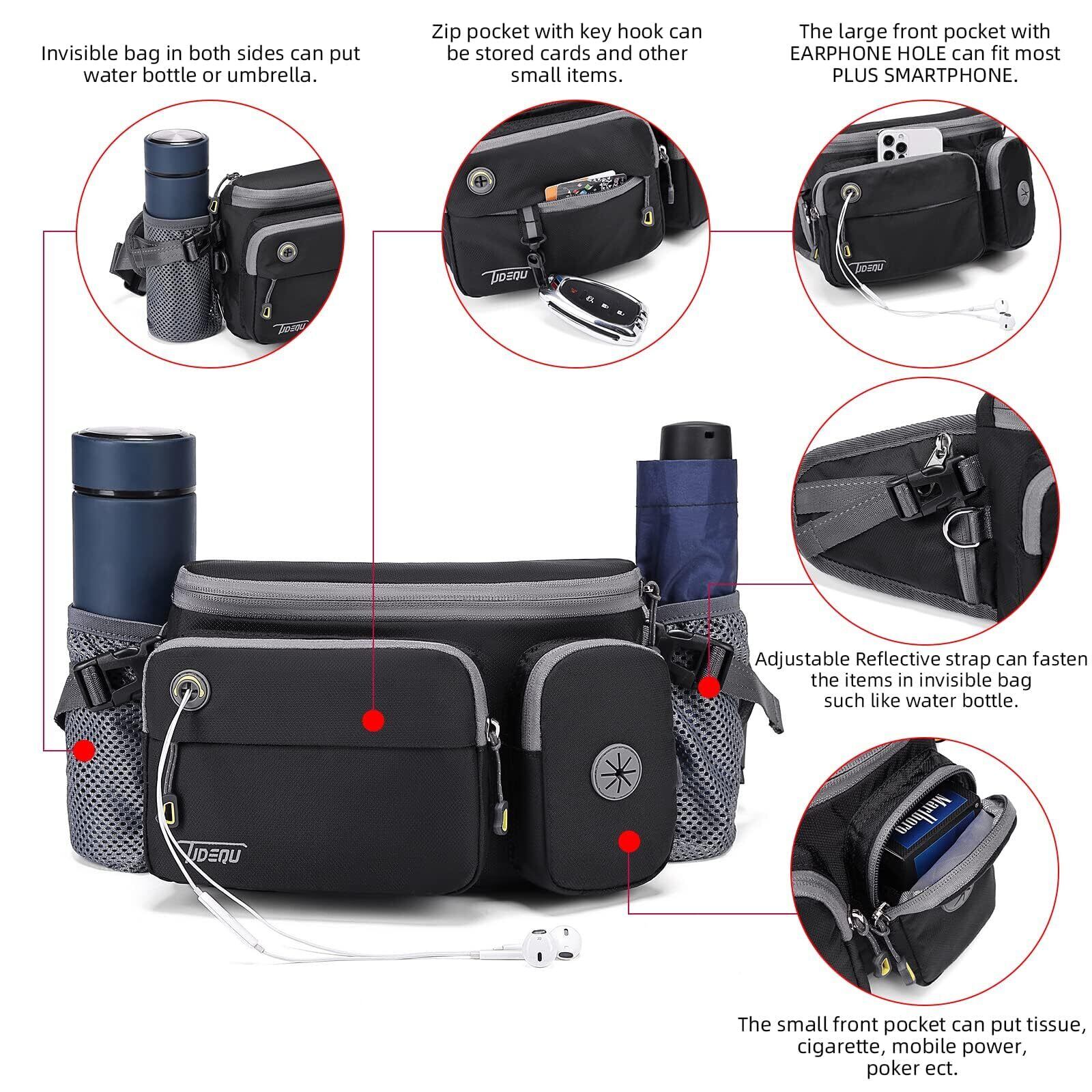 TUDEQU ウエストポーチ メンズ 大容量, 2つの隠れボトルホルダー ウエストバッグ, ヒップバッグ,犬 散歩ウエストポーチ,ボディバッグ,登山ポーチ,ランニング ポーチ,犬 お散歩バッグ