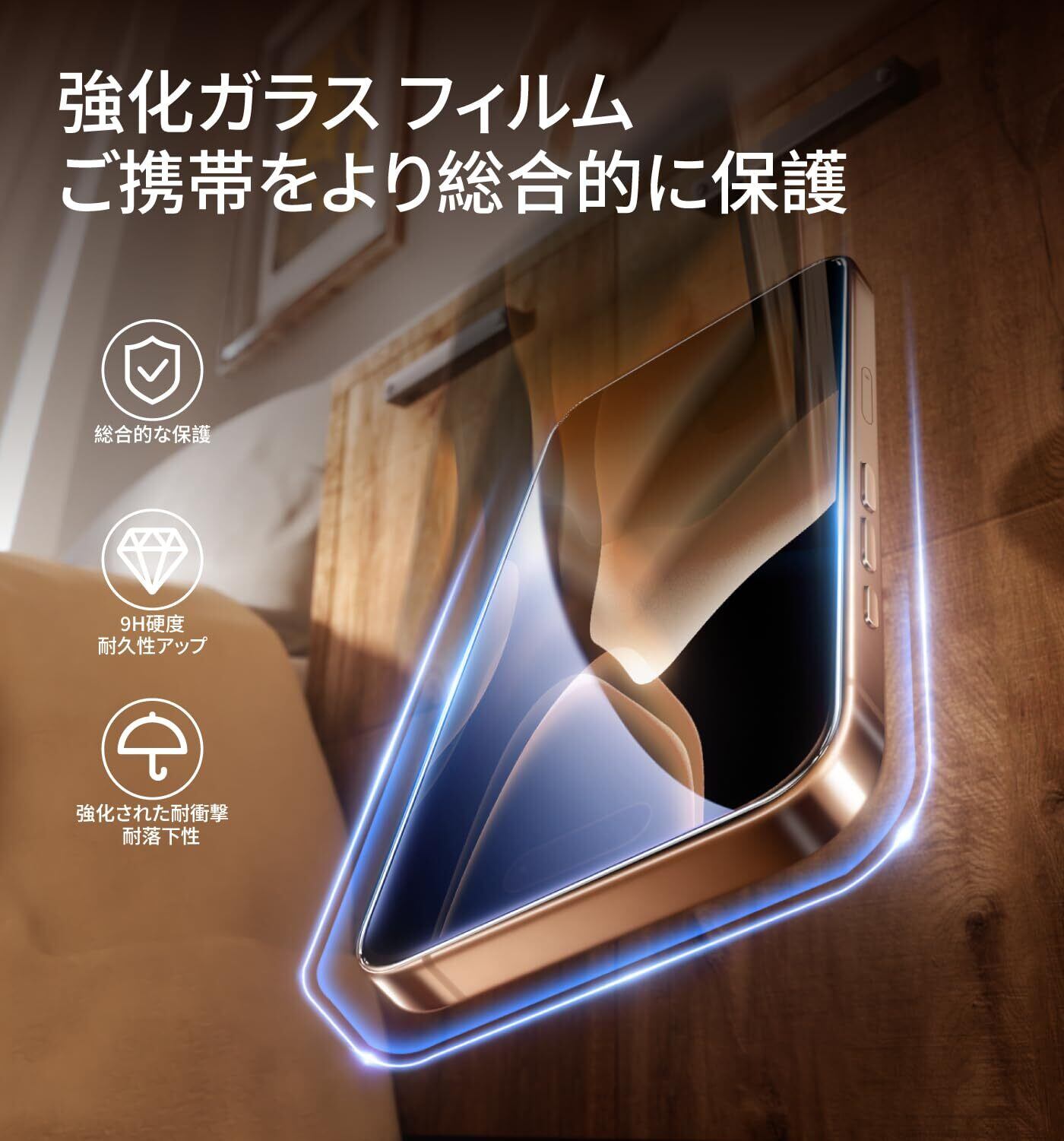 【人気ブランド再進化登場】百万以上の欧米ユーザーのフィードバックを集めて日々改善したマジックガイド枠は技術の革新だけではなく、匠の精神を求める結晶で、今は再進化!操作が簡単でずれにくく、一歩だけで保護フィルムを貼り付けます。そのうえ、自動ホコリ取りデザインだけでなく、マジックガイド枠のスロープデザインで、空気を効率的に取り除くことができ、初心者でも気泡レスのまま綺麗に貼れます。#本製品はiPhone16 Pro Max(6.9インチ)に対応するガラスフィルム2枚セットです。