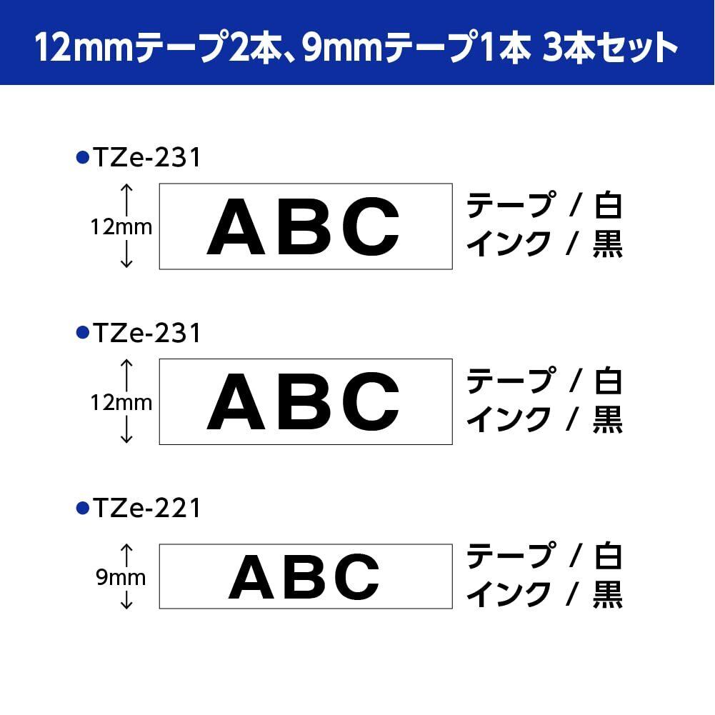 【2022最新】ブラザー工業 【brother純正】ピータッチ ラミネートテープ TZe-CTN03V3 (TZe-231×2本・TZe-221/3本パック) 白・白・白 12mm/9mm | allstore5