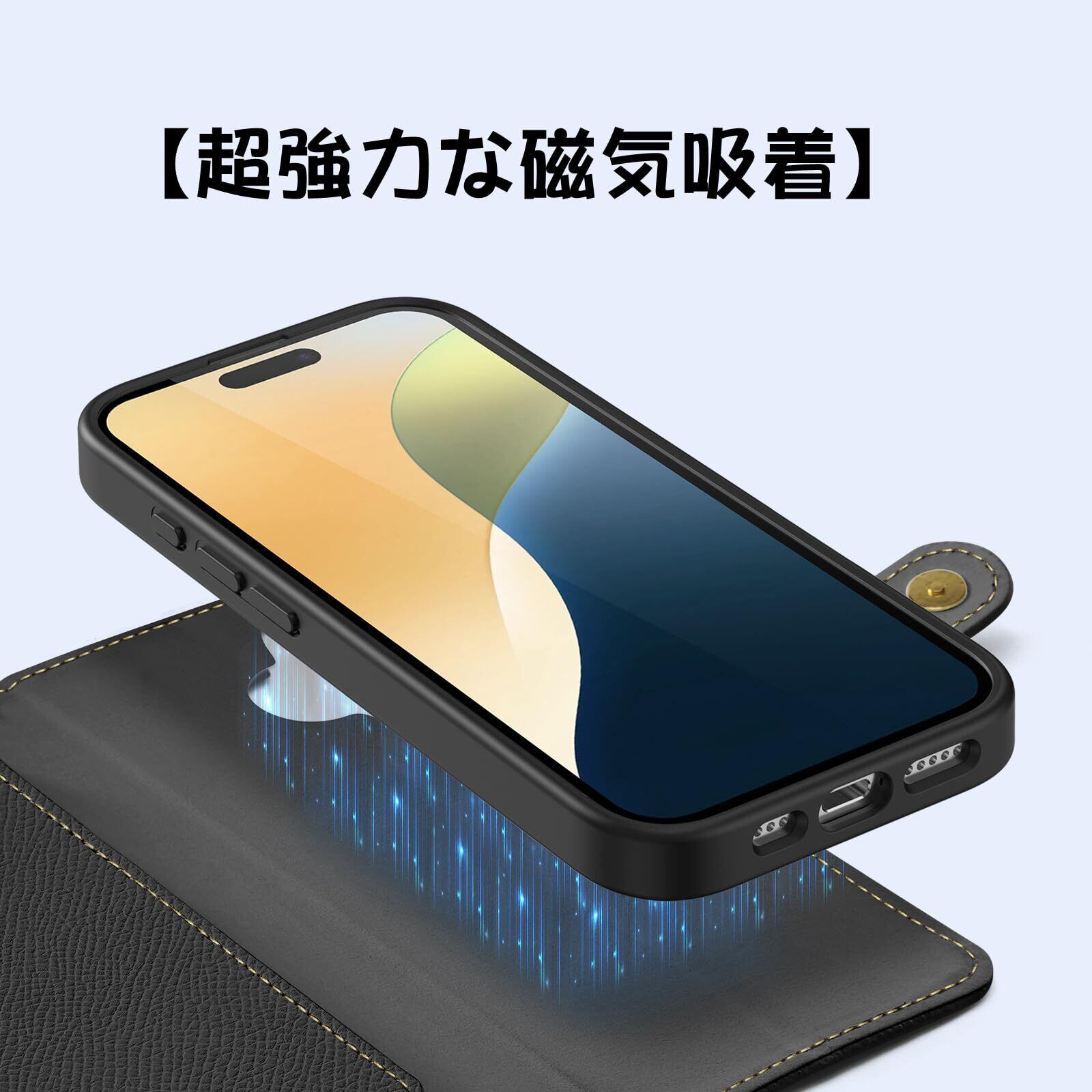【2in1分離型・多機能】①手帳型ケース+背面カバーとしても、超薄型の背面カバー単体としてもご利用いただける2in1のスマホケースです!気分や状況に合わせて使い分けられてとでも便利です!背面カバー単体を使用時に、MagSafe・ワイヤレス充電に対応できます。②横置きスタンド機能付き、異なる角度によって、液晶画面を横置きにして、動画視聴や読書の時など、いい楽しみになります。③スピーカーホール付き、蓋を閉じた状態でも通話可能、操作性を活かす。