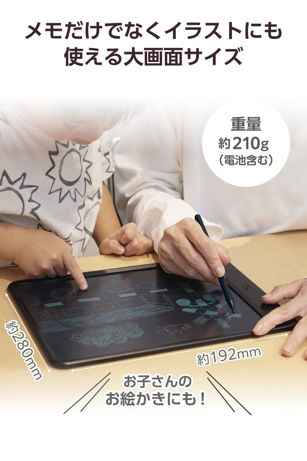 ■メモだけでなく、イラストやお子さんのお絵かきにも使える大画面の12インチです。