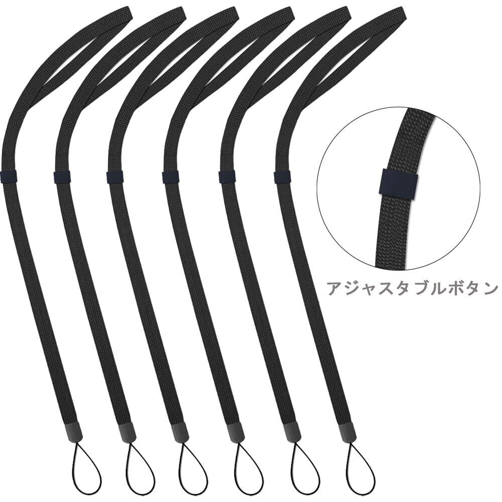[AMUU] ネックストラップ 調整可能な長さ 携帯すとらっぷ 首かけ ストラップ スマホ 名札・ホルダー スマートフォン マスコット キー 用 落下防止 ナイロン 6本入 ブラック