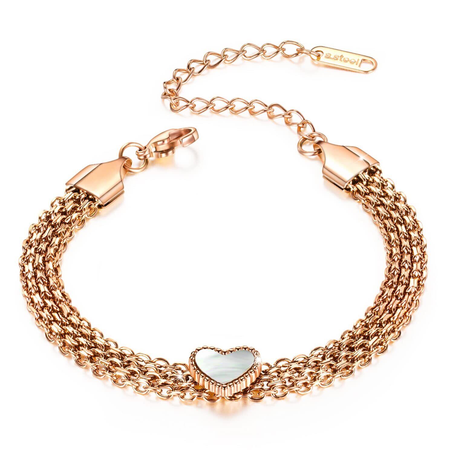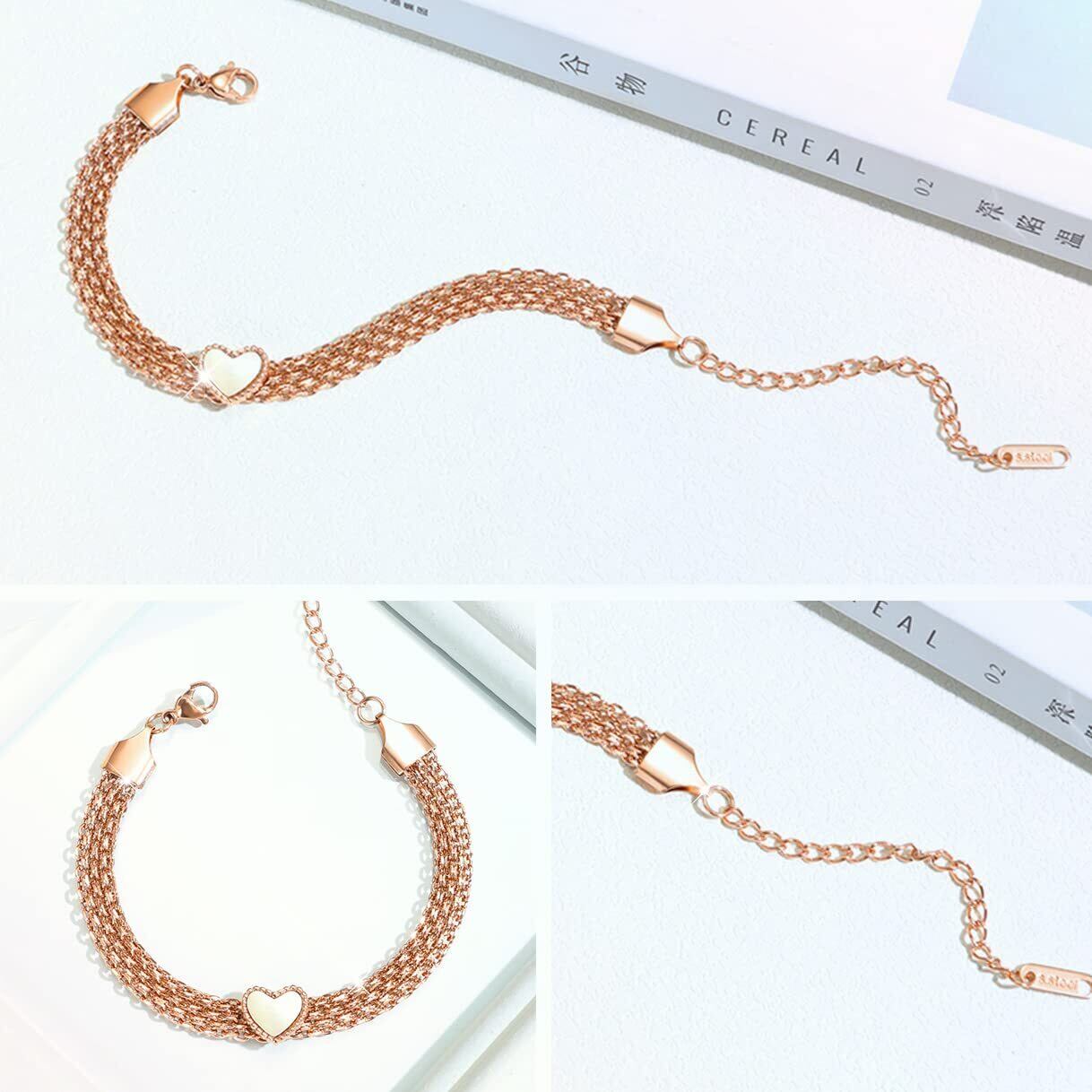 【ハートブレスレット】ステンレス鋼は非常に耐久性のあるチタン金属であり、日常の使用に適しており、皮膚を刺激したりアレルギー反応を引き起こしたりせず、着用しやすいです。耐食性にも優れ、汗などの影響を受けにく。金属アレルギー対応ブレスレットレディース普段使っている中ではほとんど変色の心配はありません、いつでも美しく輝く女性ブレスレットジュエリー!