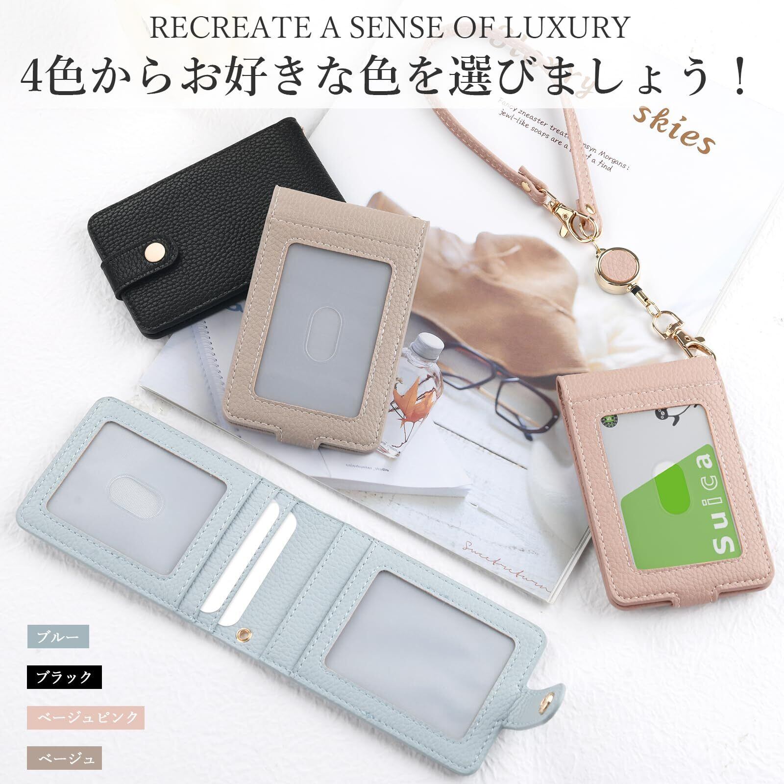 【2022最新】[Yeepan] 定期入れ パスケース パス入れ リール付き icカードケース カードケース 革 通勤 通学 ICカードケース ストラップ付き 3面 ICカード6枚使用可能バタフライタイプ メンズ レディース 極薄軽量-ベージュピンク