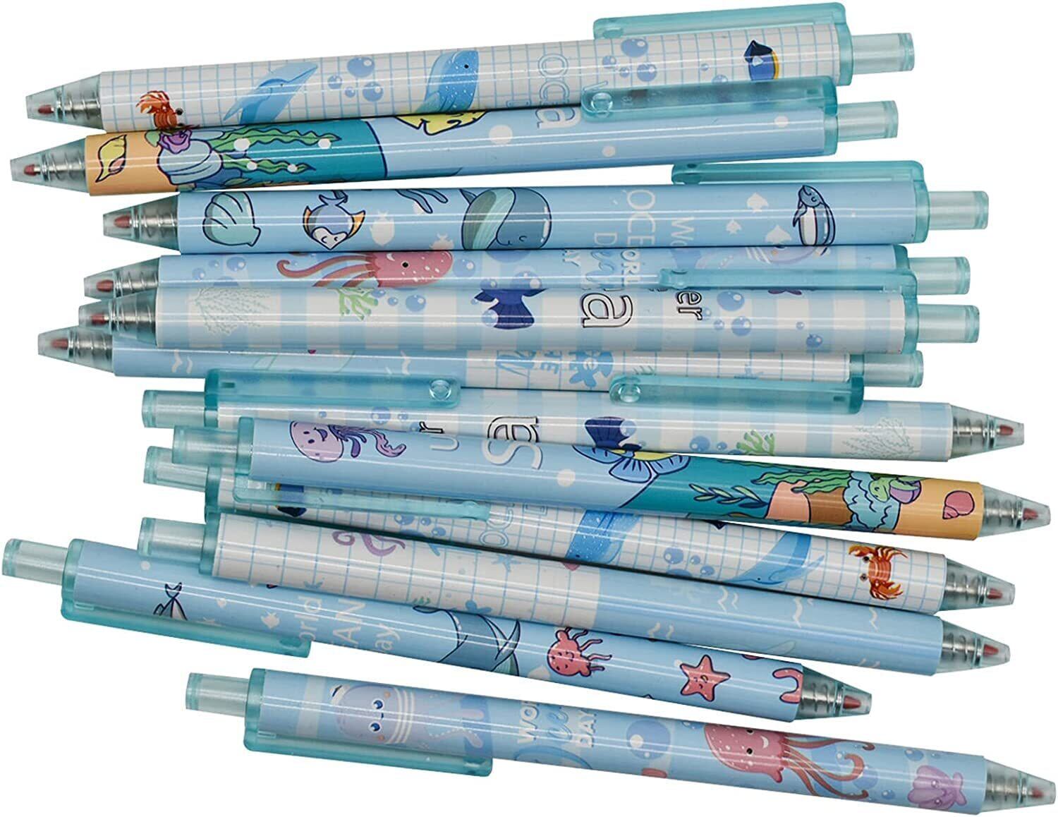 Maydahui かわいい 海 動物 ノック式 ボールペン 12本セット 0.5mm 黑 インク おしゃれ ジェル ボールペン 可愛い 文房具 ギフト プレゼント 子供 学生