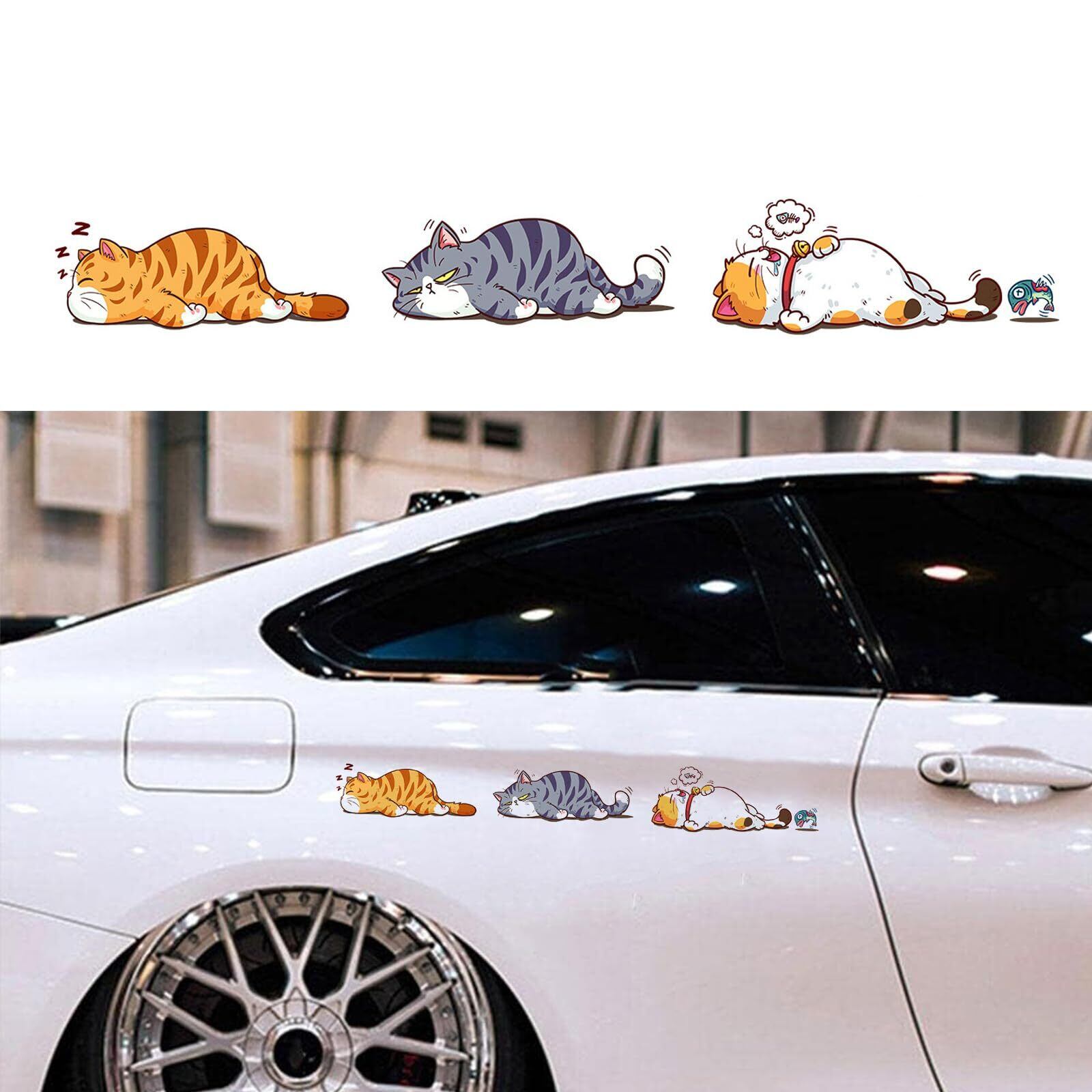 happykau 車 ステッカー 3匹の猫セット おもしろ 猫用ビニールステッカー かわいいネコのイラスト 車傷隠し カーステッカー ペットの猫 キズ隠し 凹み隠しに ステッカー 防水仕様 に 貼る ガラス 汎用 車ドア 窓 壁 装飾 シール 取り付け簡単 (S)