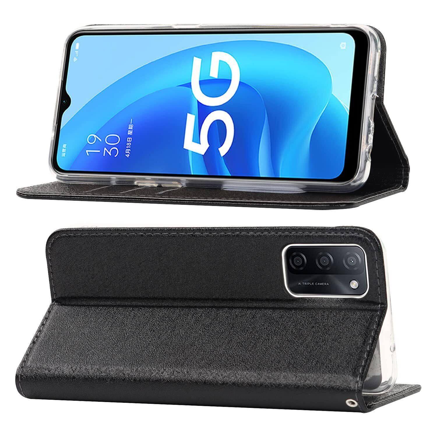OPPO A55S 5G ケース 手帳 財布型 OPPOA55S 5G ケースoppo a55s 5g カバー 手帳型ストラップ付き PU皮革 明るい色 内蔵マグネット 携帯カバーカードポケット ブラック