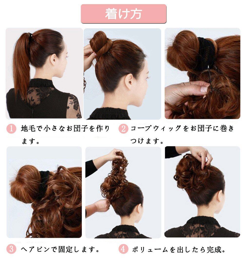 YJINCO 七五三髪飾り ウィッグ カールロープウィッグ お団子ポイントウィッグ エクステ 巻き付け 部分ウィッグ つけ毛 耐熱 ナチュラルブラック YJWO001-nblk