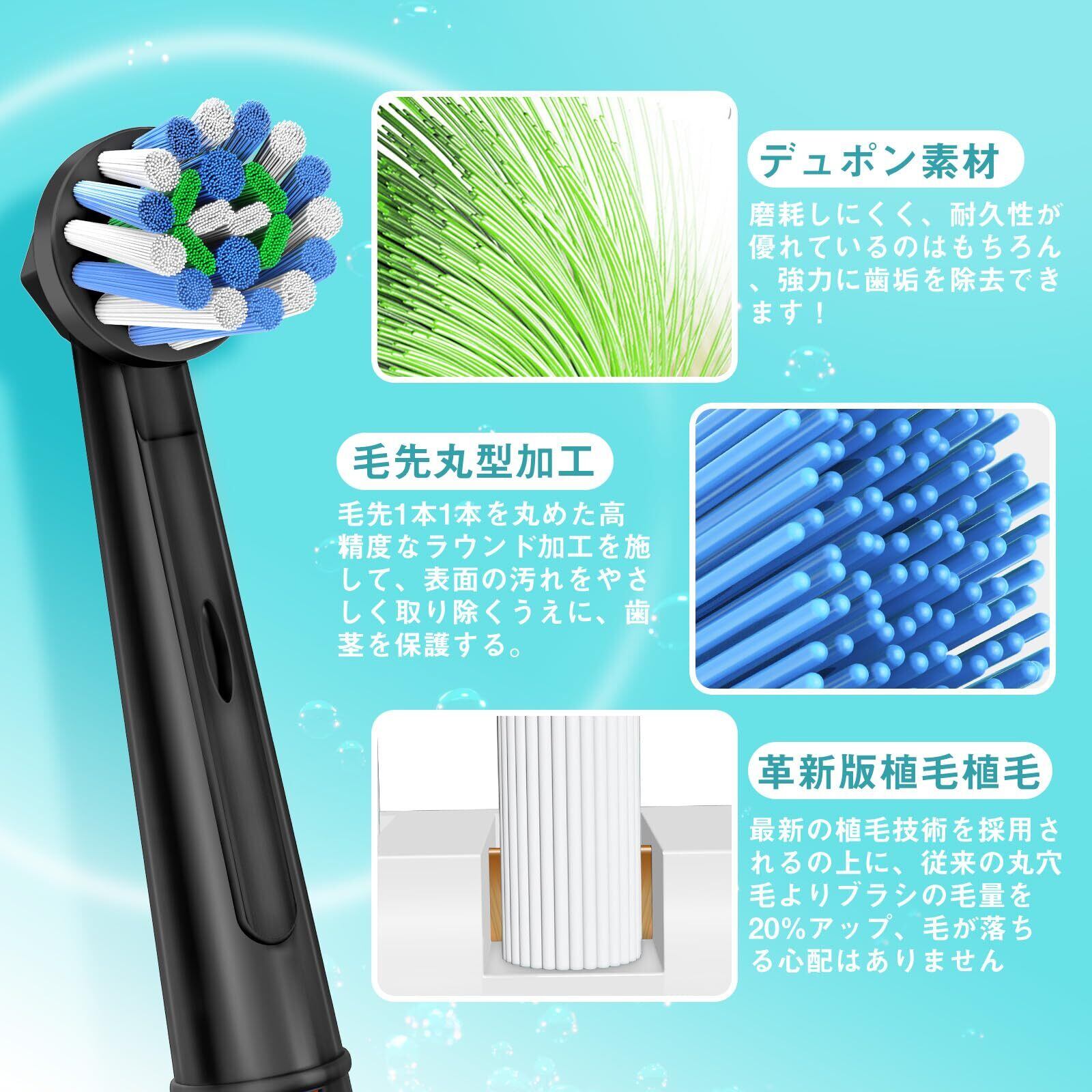 【歯茎の健康を守る】①世界的に有名な米国のDuPont素材で作られたのブラウン オーラルb 互換の 替えブラシ!0.12-0.15の異なる直径の毛、歯のまわりを徹底的にきれいにし、摩擦による不快感の歯茎を保護します。②毛先1本1本を丸めた高精度なラウンド加工を施していますので、歯面や歯肉にやさしく、安心してご利用いただけます。③Trustnice 替えブラシは最新の植毛技術を採用し、従来の丸穴毛よりブラシの毛量を20%アップ、毛が落ちる心配はありません