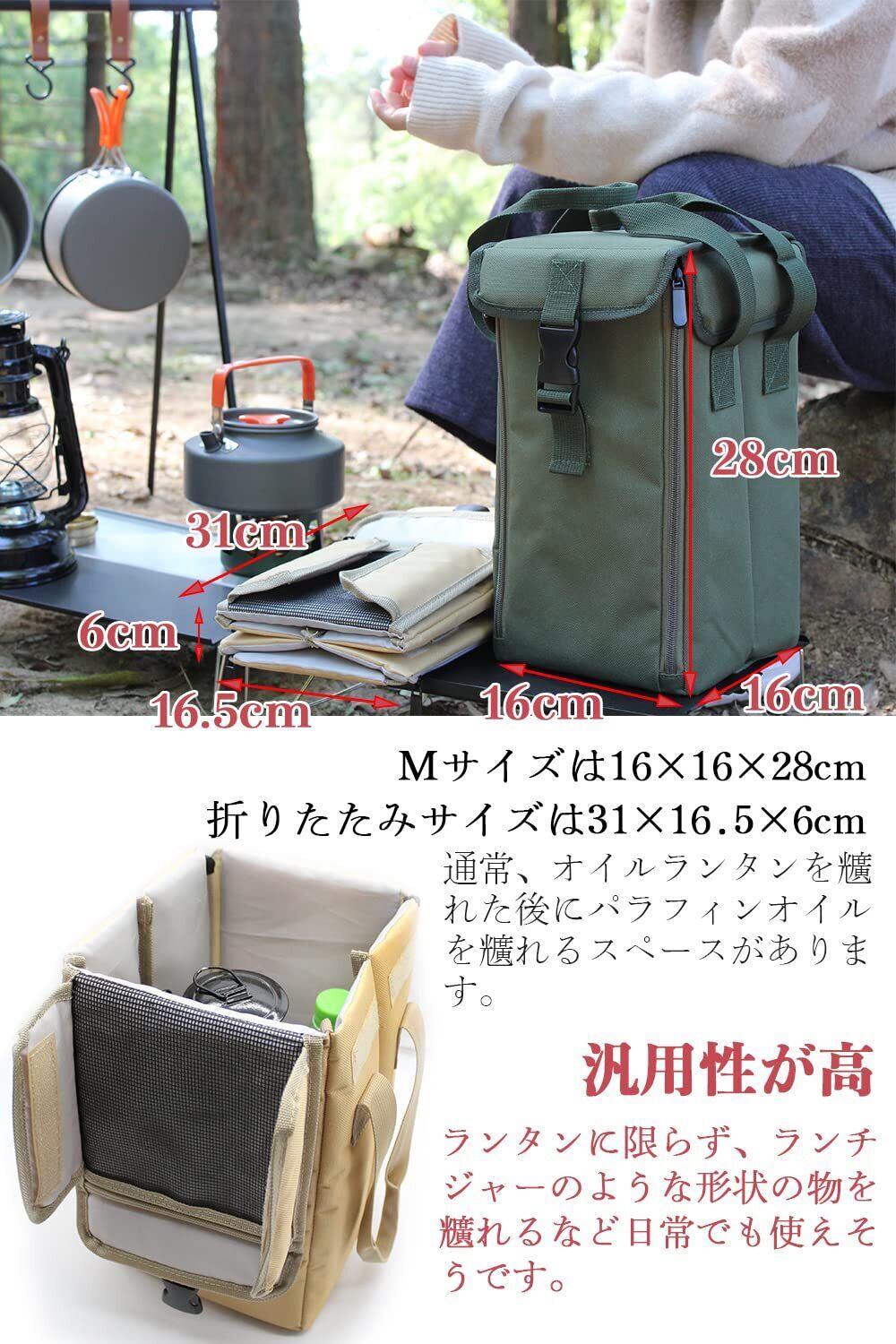 【大容量、汎用性が高】Mサイズは16×16×28cm、Lサイズは20×20×43cm、通常、オイルランタンを入れた後にパラフィンオイルを入れるスペースがあります。ランタンに限らず、ランチジャーのような形状の物を入れるなど日常でも使えそうです。