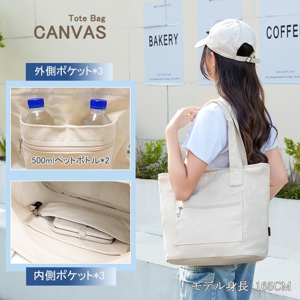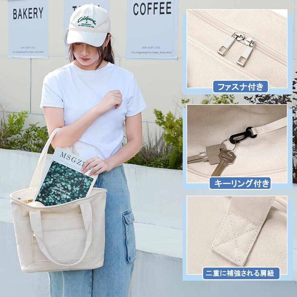 [ARIALK] トートバッグ キャンバス コットン 無地 厚手 大容量 トートバック 一泊旅行 キャンバストート エコバッグ 帆布 肩掛け トート tote bag ショッピングバッグ シンプル ファスナー付き a4 レディース メンズ