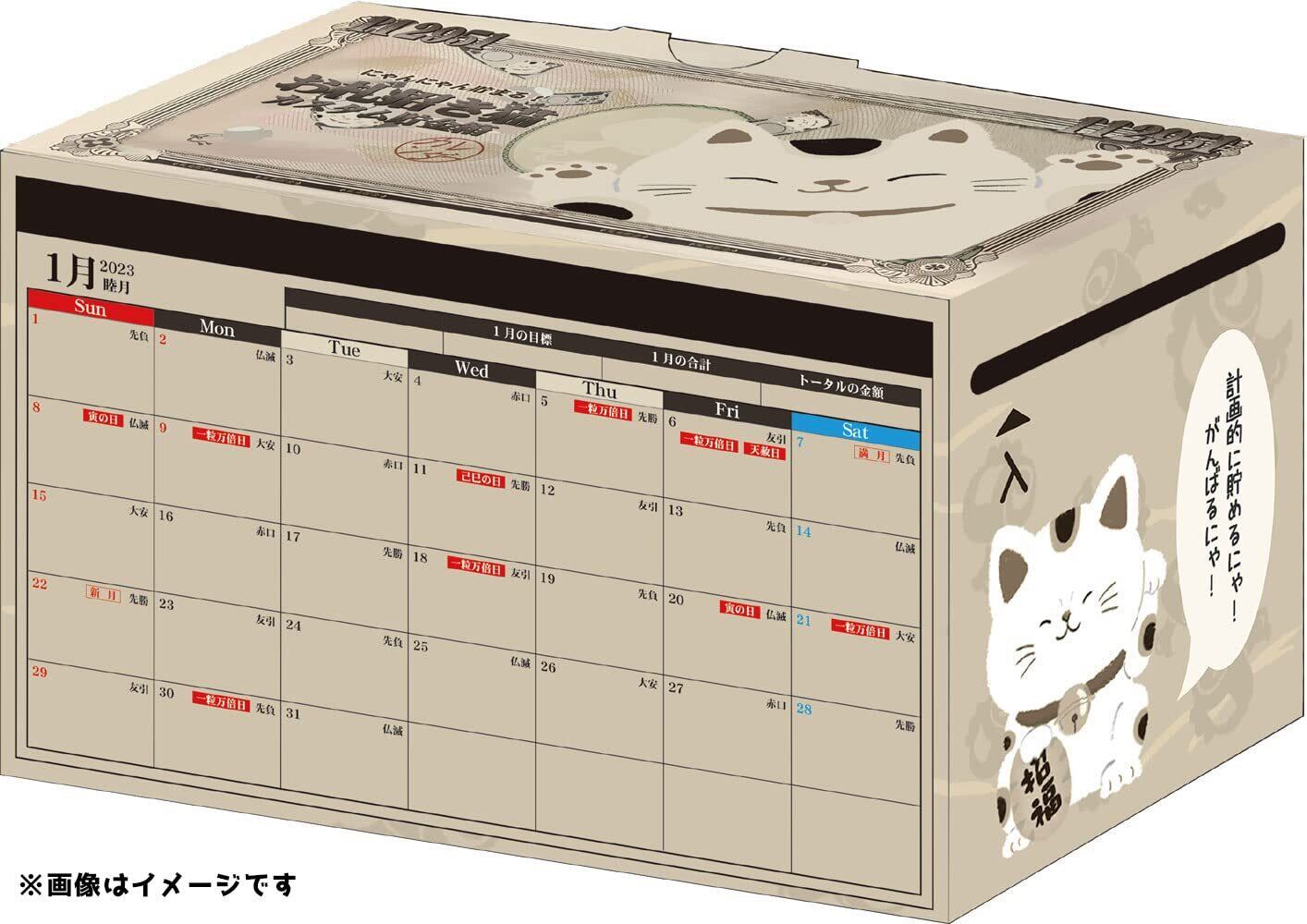 パルマート お札招き猫カスタム 貯金箱カレンダー 2023 H10.3×W16.5×D10.5cm CAL-OMC2023