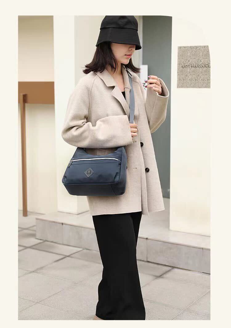 【サイズ】コンパクトで大容量、豊富なポケットデザインが人気のショルダーバッグです。多層収納ポケットがあるので、貴重品と他の荷物を分けてお使いいただけるので大変便利です。折りたたみ傘や500mlのペットボトルも入り、B5サイズの手帳や本はスムーズに入ります