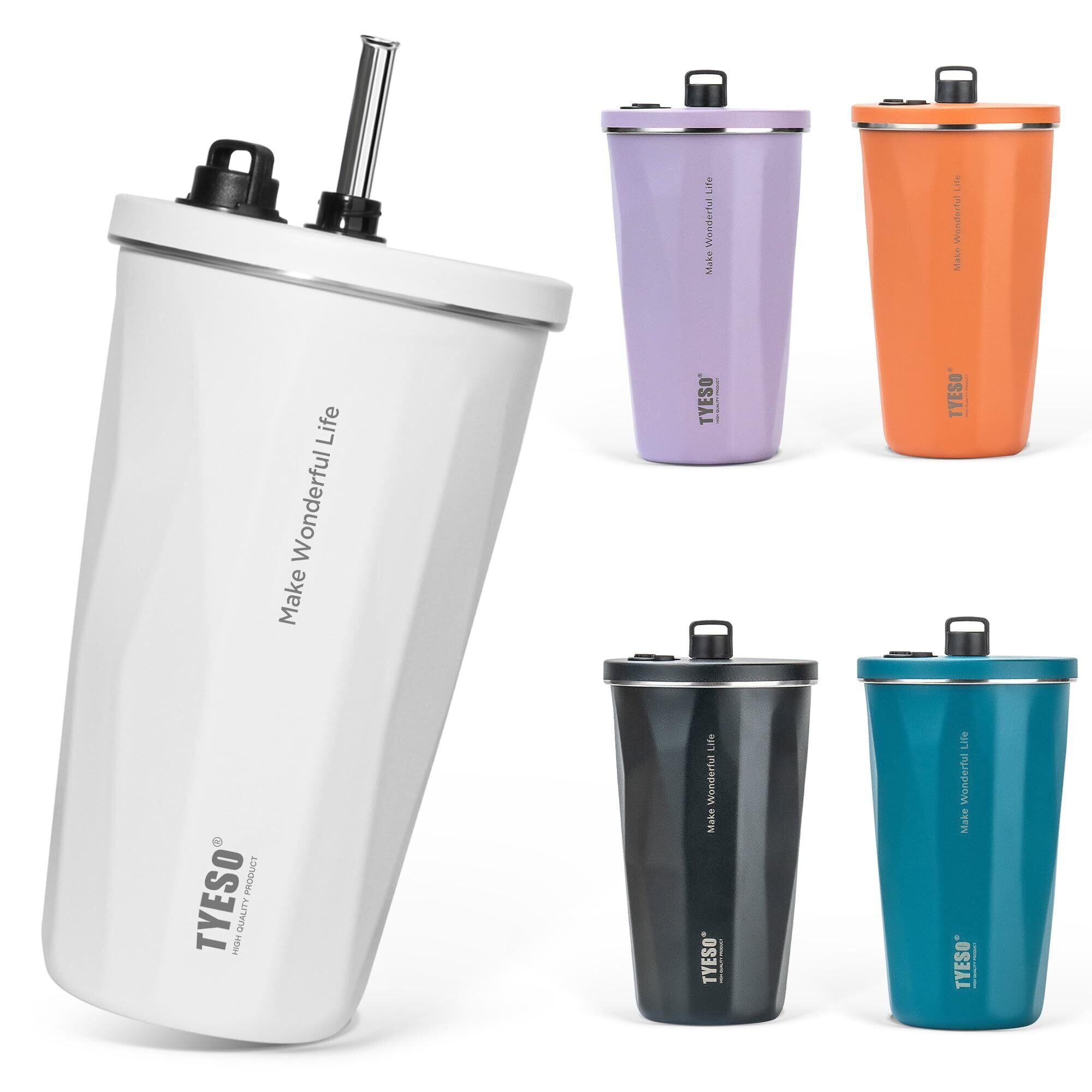 【人気商品】TYESO タンブラー ストロー付き ステンレス 広口 真空断熱 ホームオフィス アウトドア 多色 保温 保冷 ふた付き 600ml 大容量 女の子 男の子