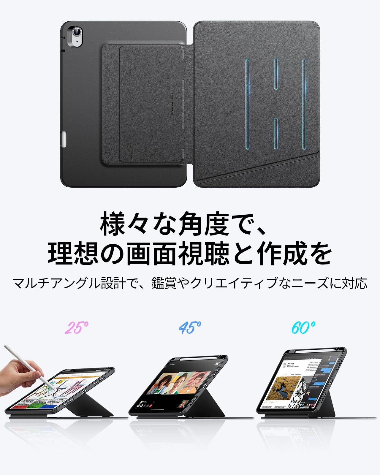 ESR iPad Air 11インチ ケース(M3/M2、2025/2024) iPad Air 第5/4世代 専用カバー(2022/2020) ペン収納 耐衝撃 縦横スタンド 自動ウェイク/スリープ Pencil Pro/USB-C ワイヤレス充電対応 マルチアングルケース 11インチ/10.9インチ Flipシリーズ ブラック